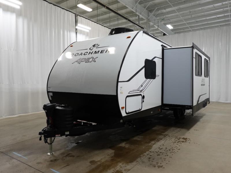 With any Apex X Series travel trailer by Coachmen, you will enjoy camping trips at every turn! They feature higher walls and lower prices compared to the standard Apex line, making them great for first-time RVers! The spacious interior will have you feeling right at home, and the full bath and kitchen amenities make life at the campground hassle-free. There are also plenty of storage space to store your personal belongings, camp gear, food and more! Like with all Coachmen's products, you will find practical innovation, a dependable design, and all the features you're looking for in an RV. Choose an Apex X Series travel trailer today!