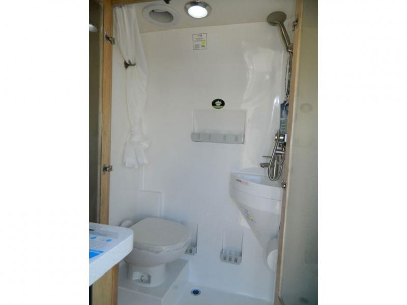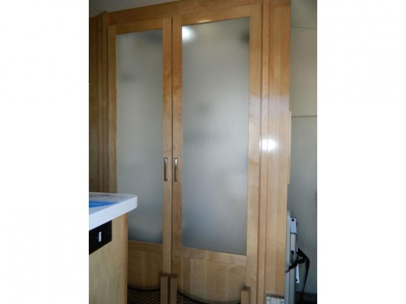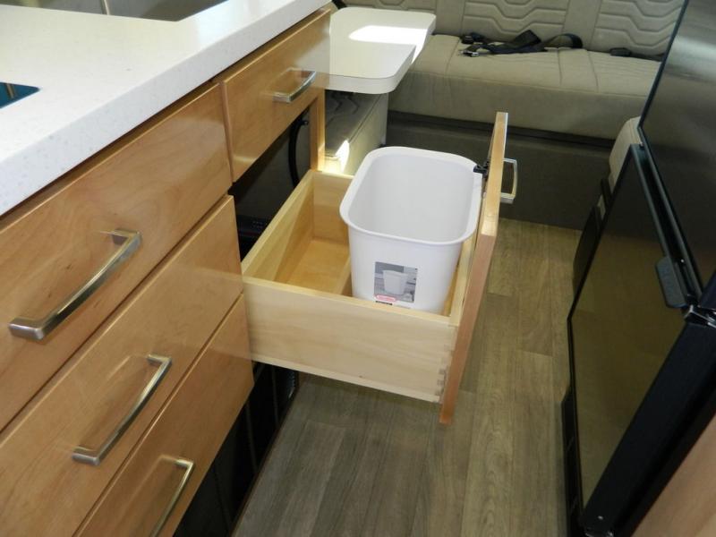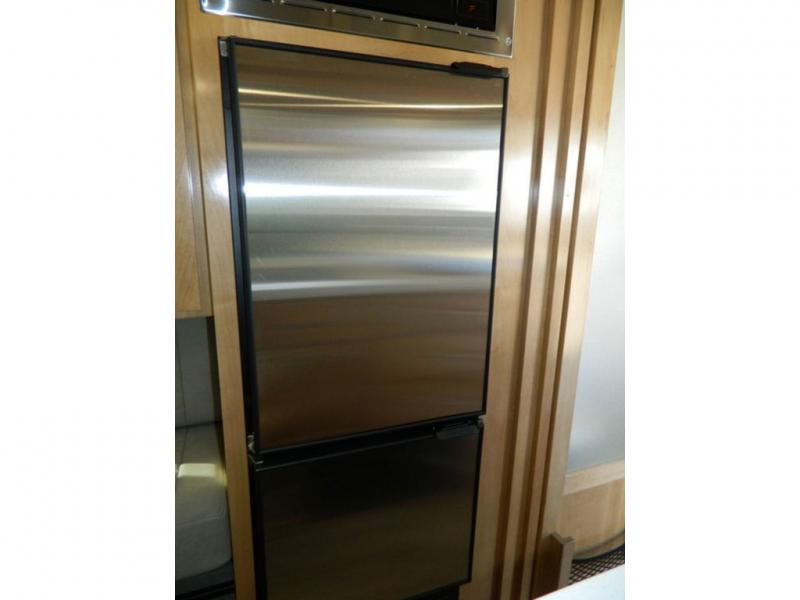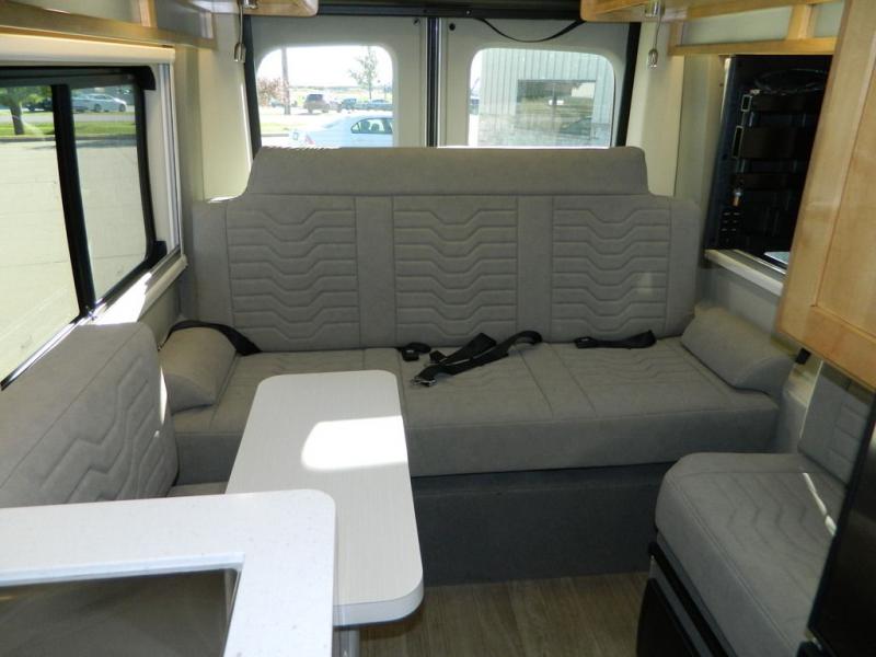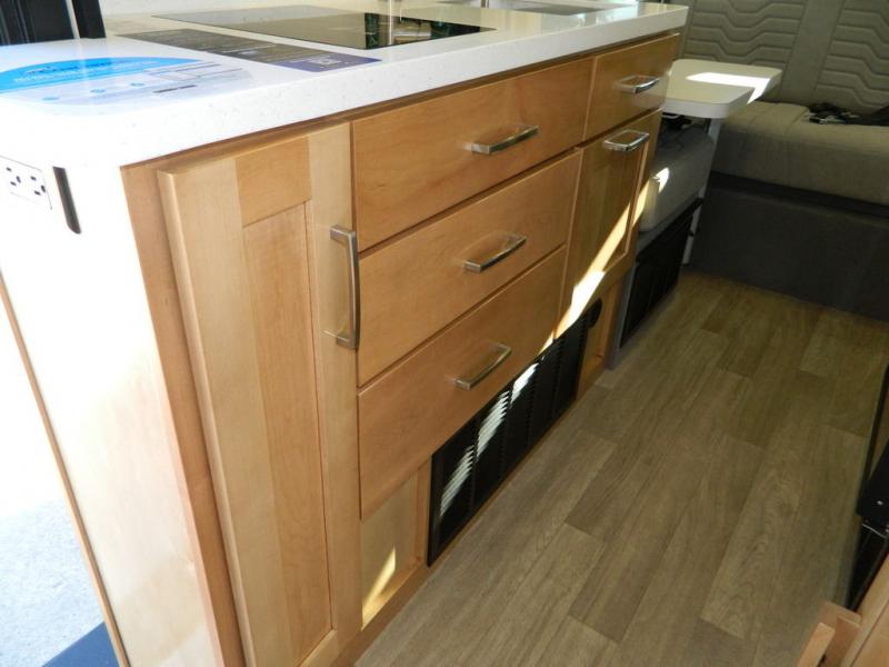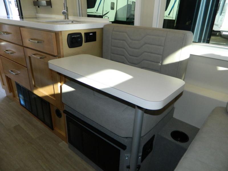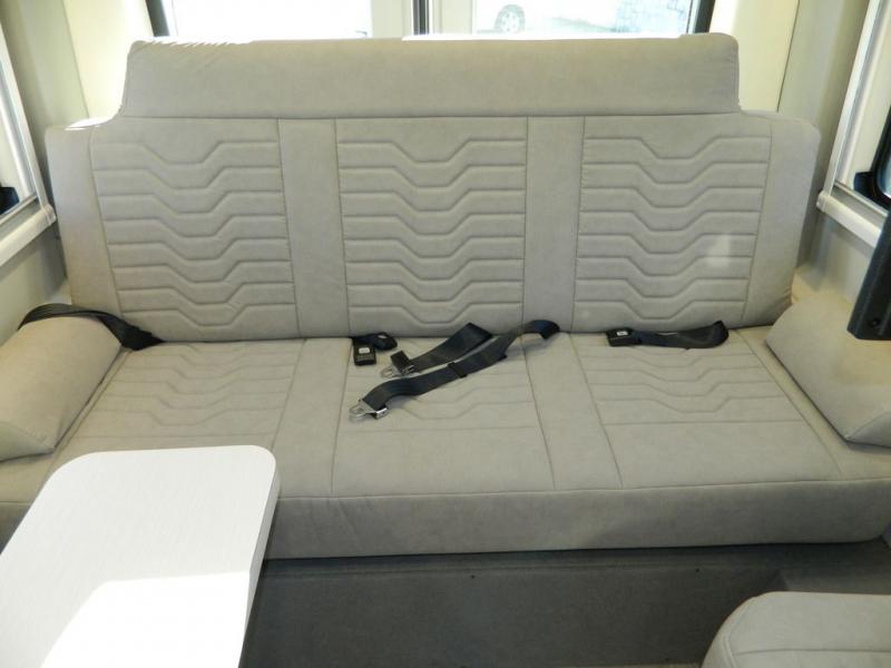 This all-wheel drive coach is perfect for trips near and far. Once you park, you can swivel the captain's seats around to enjoy lunch at the swivel table, and you can freshen up in the convenient wet bath before heading out to stretch your legs. There is an induction cooktop, a round sink, plus a Nova Kool compressor refrigerator for your perishables. The two jump seats and rear power sofa will convert to a comfortable bed at night, and the swivel table in between will allow you to play a game of cards before bed. And don't worry about storage space since this model includes overhead compartments and a wardrobe to keep your clothes wrinkle-free!
