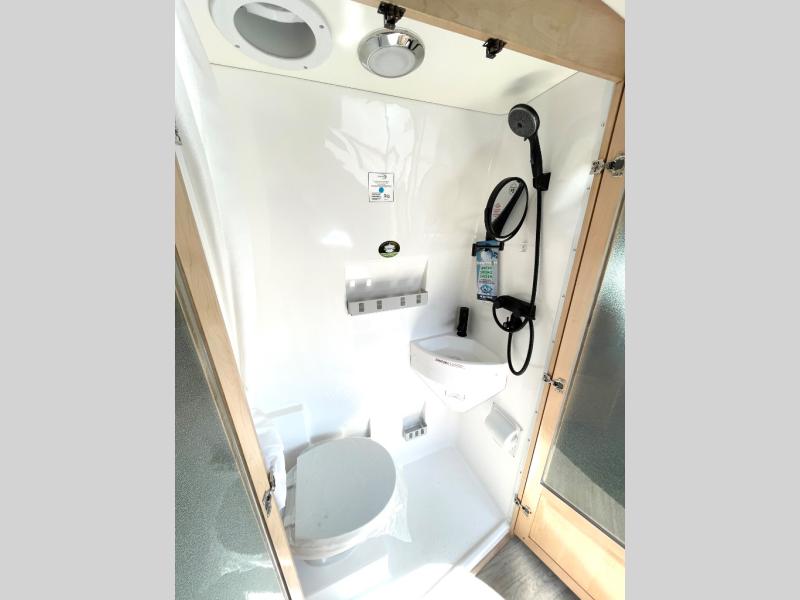 This all-wheel drive coach is perfect for trips near and far. Once you park, you can swivel the captain's seats around to enjoy lunch at the swivel table, and you can freshen up in the convenient wet bath before heading out to stretch your legs. There is an induction cooktop, a round sink, plus a Nova Kool compressor refrigerator for your perishables. The two jump seats and rear power sofa will convert to a comfortable bed at night, and the swivel table in between will allow you to play a game of cards before bed. And don't worry about storage space since this model includes overhead compartments and a wardrobe to keep your clothes wrinkle-free!