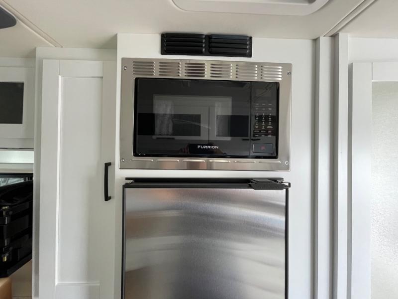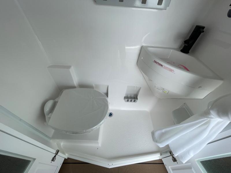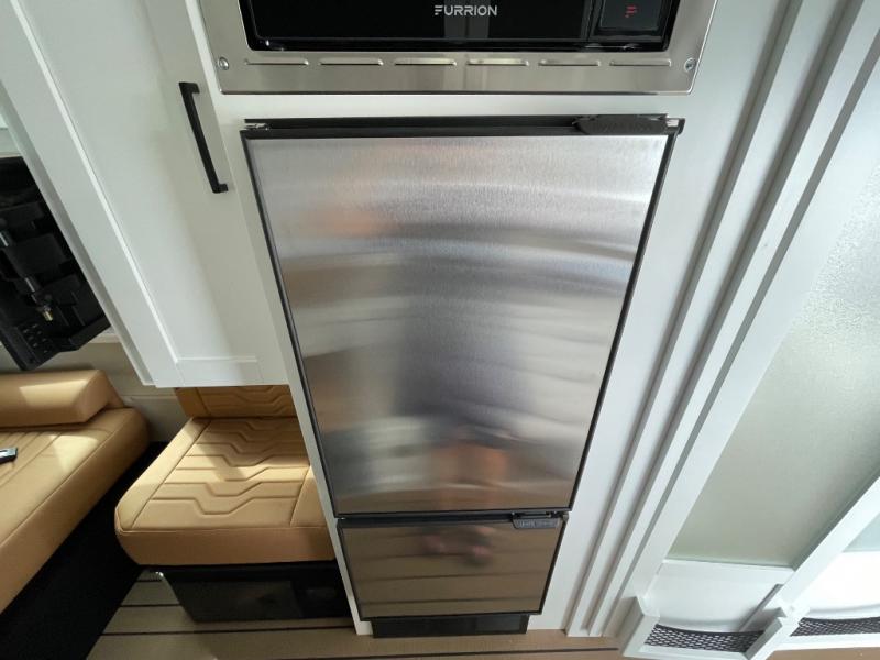 This all-wheel drive coach is perfect for trips near and far. Once you park, you can swivel the captain's seats around to enjoy lunch at the swivel table, and you can freshen up in the convenient wet bath before heading out to stretch your legs. There is an induction cooktop, a round sink, plus a Nova Kool compressor refrigerator for your perishables. The two jump seats and rear power sofa will convert to a comfortable bed at night, and the swivel table in between will allow you to play a game of cards before bed. And don't worry about storage space since this model includes overhead compartments and a wardrobe to keep your clothes wrinkle-free!
