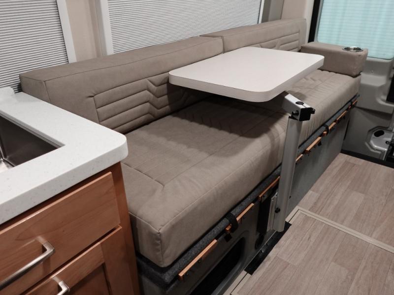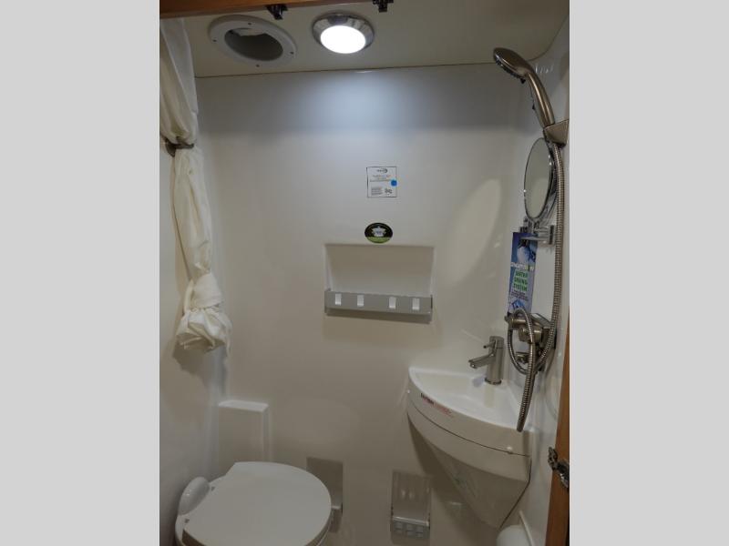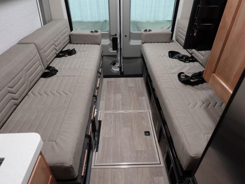 Plan out your trips in this versatile coach with luxury features. Since it is all-wheel drive you can go off the beaten path when the adventure calls for it, and the rear pull-down screen will allow you to let fresh air in when you park. There are two 23" x 76" sofas that will convert to a 68" x 76" bed when you're ready for some shut-eye, or you may just make day trips with friends since there are six seatbelts included. This Beyond galley includes an induction cooktop, a microwave oven, plus a Nova Kool compressor refrigerator, and the wet bath on board will allow you to stay clean throughout your many excursions.