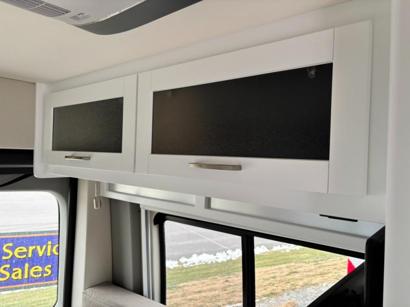 The Beyond Class B gas motorhomes by Coachmen are packed full of stylish and convenient features to meet your adventurous lifestyle. You will love how easy it will be to drive with the Supersprings International suspension kit, the ten speed transmission, and the added safety features, like the blind spot assist and forward collision warning. The ABS insulated rear doors will provide more protection during the colder months, plus each model includes a Truma Combi Eco Plus furnace/water heater for maximum efficiency. A King Olympus digital antenna, WiFi router and cell booster prep means you can stay connected to the outside world as you travel, and the Firefly multiplex system includes dual screens to control your coach's functions with ease. Inside, you'll find hardwood cabinetry, a one-piece fiberglass shower, a rear pull-down screen and rear window covers, and two contemporary decor choices to fit your style. The optional Li Lithium Battery System can be added which features a 640 amp-hour lithium battery, a Xantrex XC Pro 3,000W inverter/charger, A Bluetooth battery management system, and more power features!