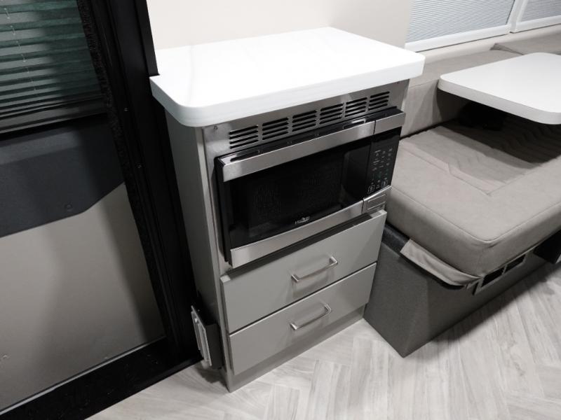 Are you looking for a versatile coach to take on far away journeys? This all-wheel drive includes a rear wet bath with a flip-down sink, plus a fiberglass shower to freshen up in each day. You can take a rest on the twin beds after a day of exploring, and the swivel table here will be the perfect spot to enjoy lunch at. If you like to cook your own meals you're in luck since there is an induction cooktop and a microwave oven, plus a Nova Kool compressor refrigerator for milk and eggs.