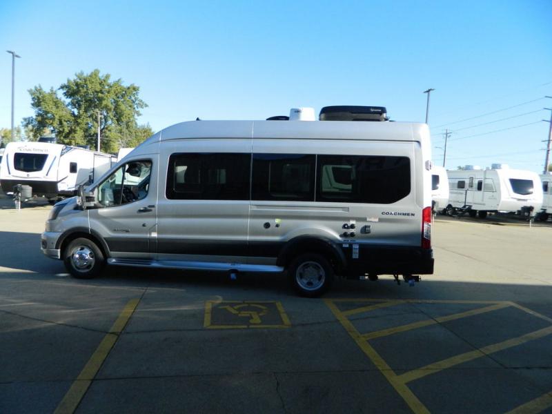 The Beyond Class B gas motorhomes by Coachmen are packed full of stylish and convenient features to meet your adventurous lifestyle. You will love how easy it will be to drive with the Supersprings International suspension kit, the ten speed transmission, and the added safety features, like the blind spot assist and forward collision warning. The ABS insulated rear doors will provide more protection during the colder months, plus each model includes a Truma Combi Eco Plus furnace/water heater for maximum efficiency. A King Olympus digital antenna, WiFi router and cell booster prep means you can stay connected to the outside world as you travel, and the Firefly multiplex system includes dual screens to control your coach's functions with ease. Inside, you'll find hardwood cabinetry, a one-piece fiberglass shower, a rear pull-down screen and rear window covers, and two contemporary decor choices to fit your style. The optional Li Lithium Battery System can be added which features a 640 amp-hour lithium battery, a Xantrex XC Pro 3,000W inverter/charger, A Bluetooth battery management system, and more power features!