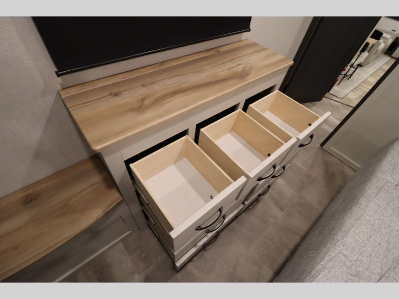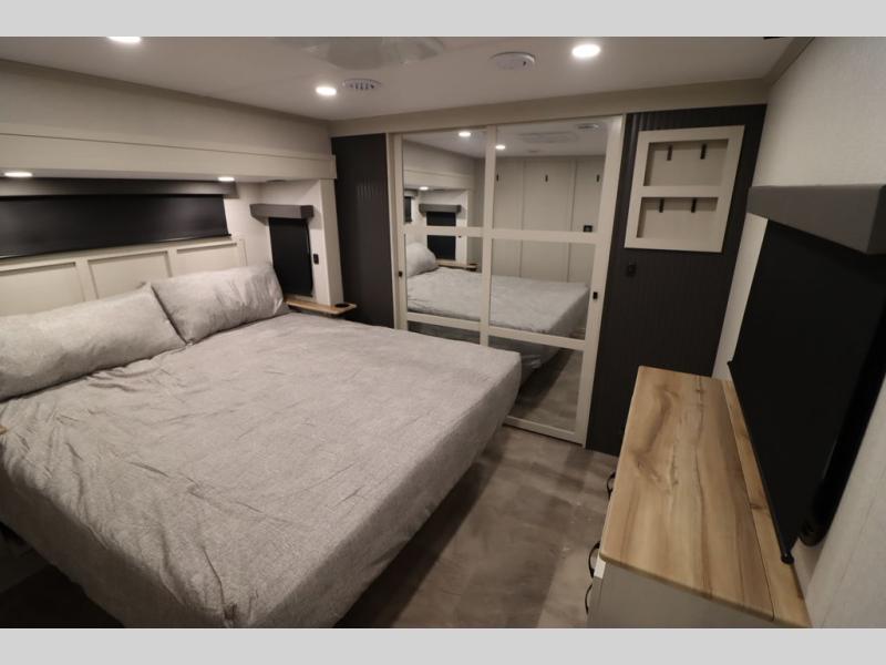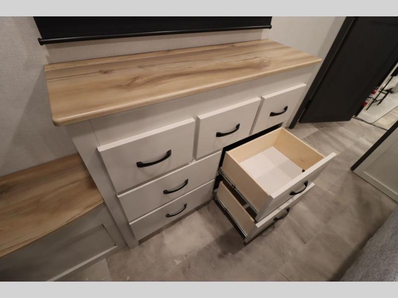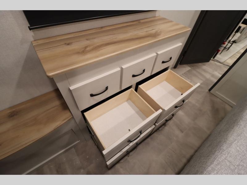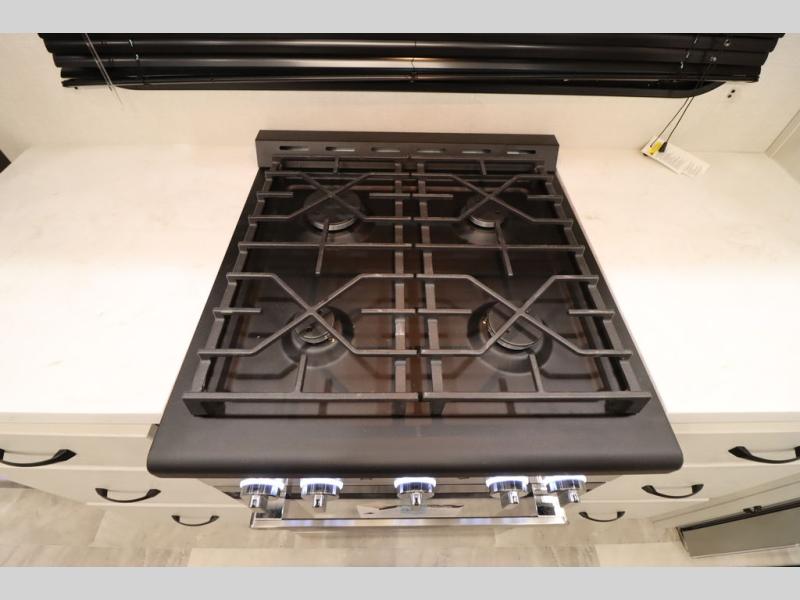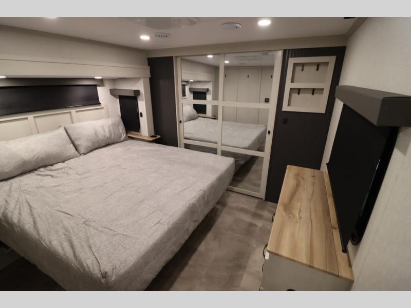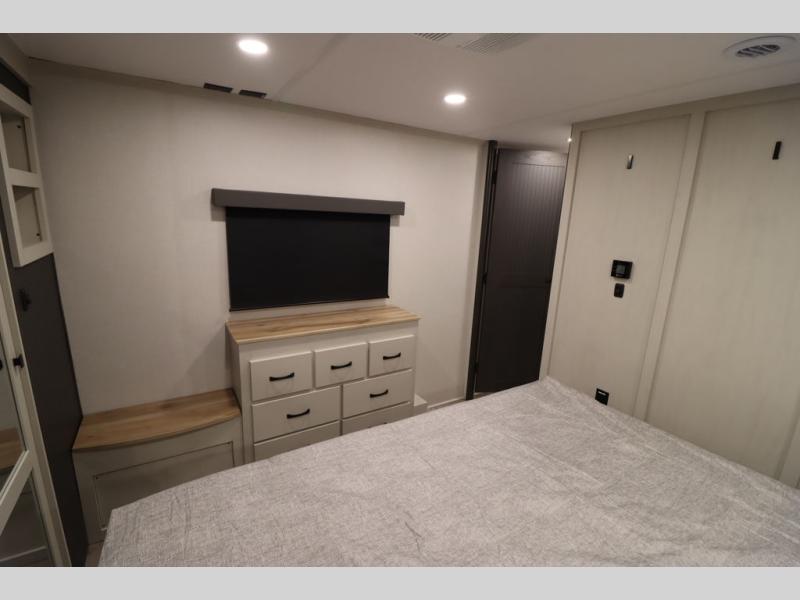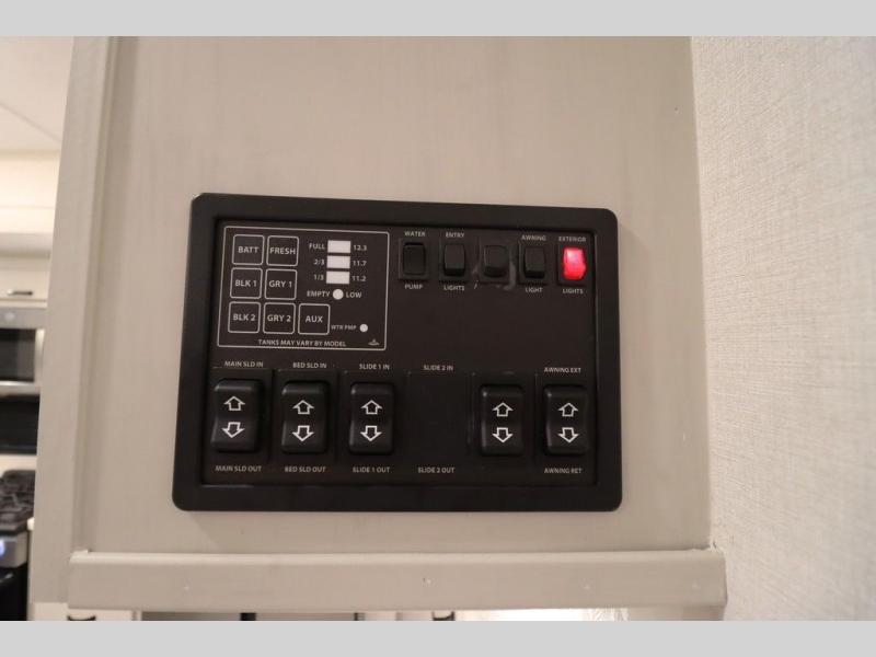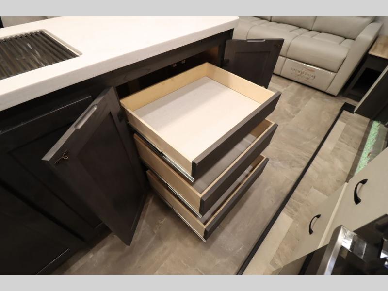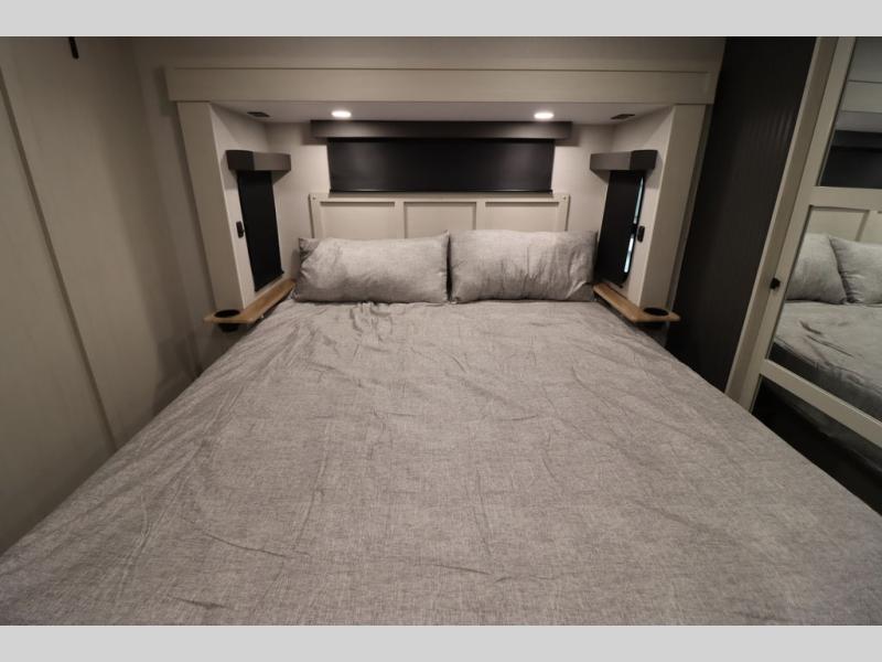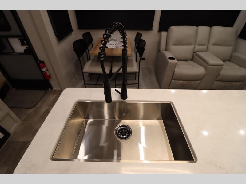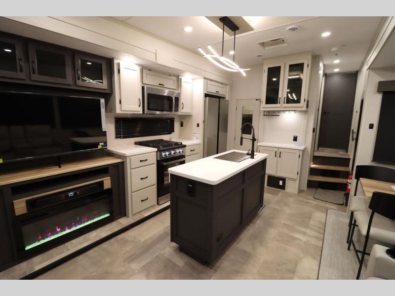 The Brookstone fifth wheels by Coachmen are coming to you with wide-body comfort, home-like amenities, and unique designs for a truly luxurious RV. The Weather Shield+ consists of a 6X double Azdel aluminum cage sidewall system, a Radiant Pro weather barrier system and more, all built to keep you in your fifth wheel comfortable and capable in varying weather. Head inside to find solid surface countertops in the kitchen, an 4K Smart LED TV in the living room, slow rise blackout roller night shades, and the list of comforts goes on! The Brookstone also includes 6-point electric auto-leveling, four step MORryde StepAbove main entry, an electric awning with LED lights, and many more exterior conveniences!