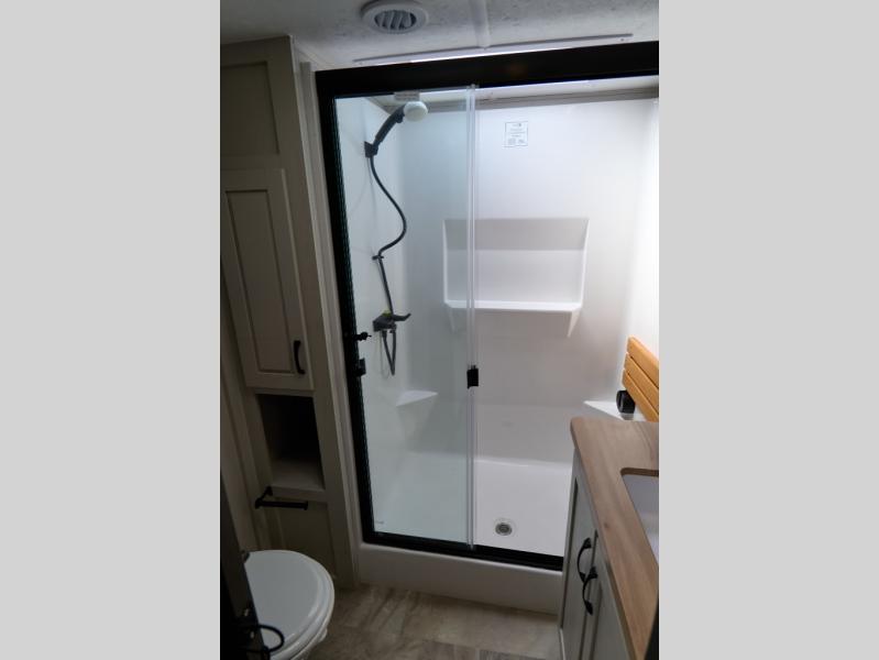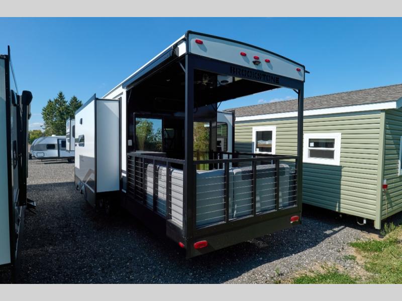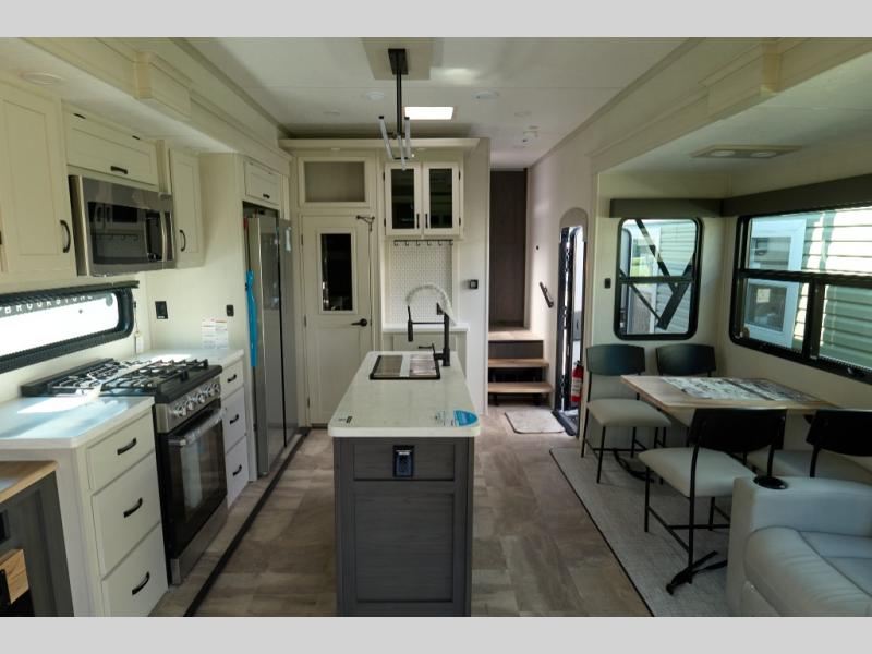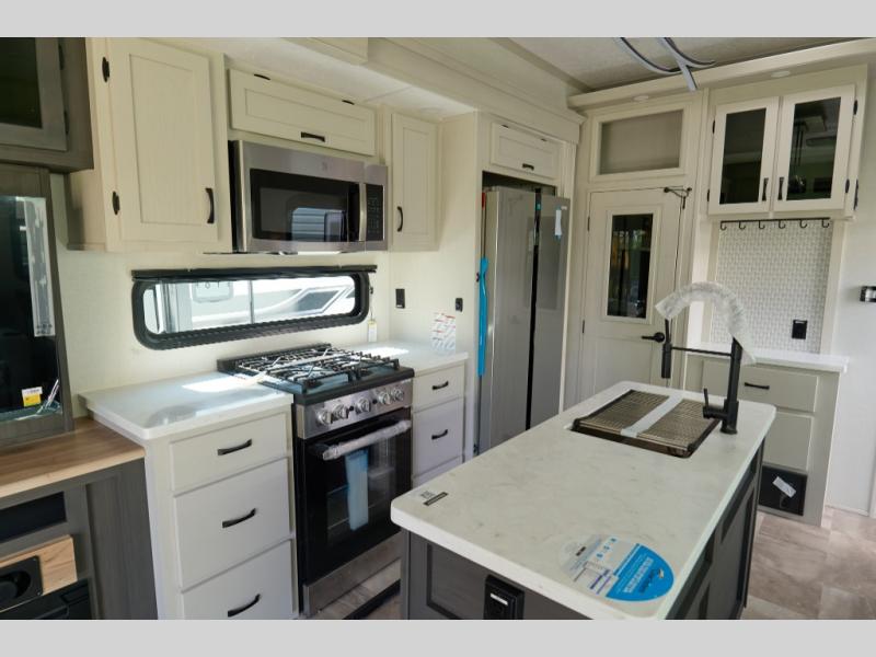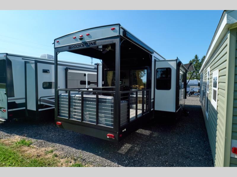The Brookstone fifth wheels by Coachmen are coming to you with wide-body comfort, home-like amenities, and unique designs for a truly luxurious RV. The Weather Shield+ consists of a 6X double Azdel aluminum cage sidewall system, a Radiant Pro weather barrier system and more, all built to keep you in your fifth wheel comfortable and capable in varying weather. Head inside to find solid surface countertops in the kitchen, an 4K Smart LED TV in the living room, slow rise blackout roller night shades, and the list of comforts goes on! The Brookstone also includes 6-point electric auto-leveling, four step MORryde StepAbove main entry, an electric awning with LED lights, and many more exterior conveniences!