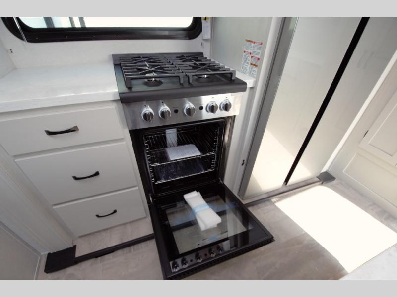 Prepare meals with ease using the residential cooktop and stainless steel oven. A residential microwave, kitchen hutch, pantry, and 12V refrigerator give you everything you need to cook on the go.