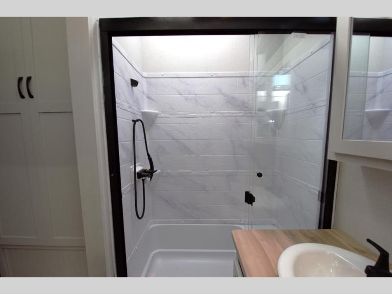 Brookstone fifth wheels are engineered for all season travel with wide body construction, 6X double Azdel aluminum framed sidewalls, and Radiant Pro thermal protection.