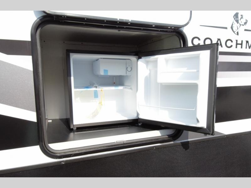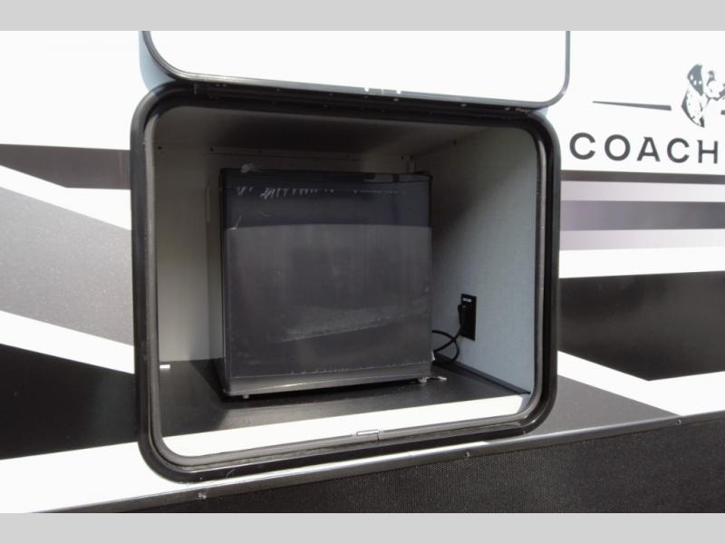 Stay cool under the 14 foot power awning with built in LED lighting. A handy exterior refrigerator keeps drinks cold while you relax outdoors.