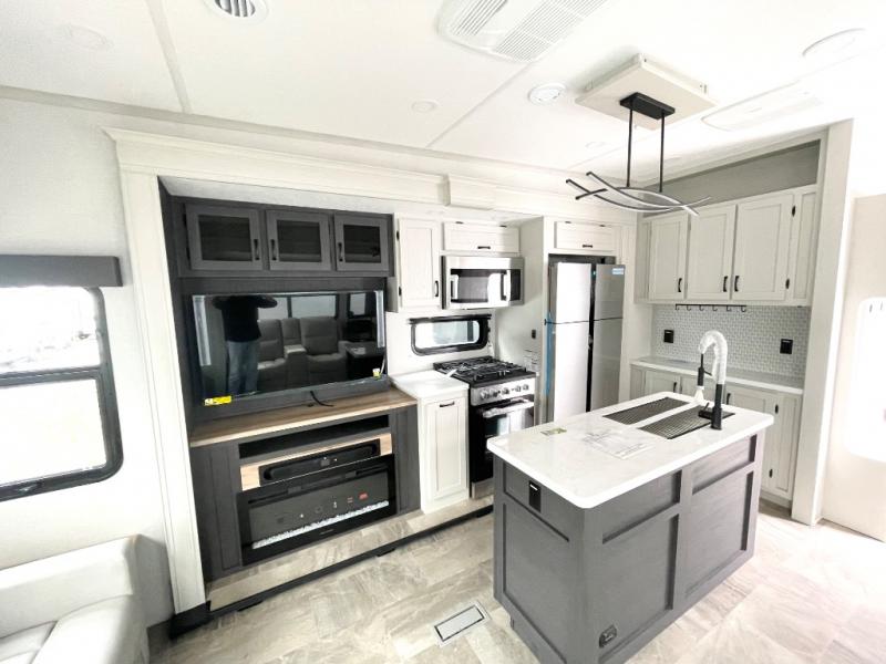 The Brookstone fifth wheels by Coachmen are coming to you with wide-body comfort, home-like amenities, and unique designs for a truly luxurious RV. The Weather Shield+ consists of a 6X double Azdel aluminum cage sidewall system, a Radiant Pro weather barrier system, and more that will help you extend your camping season or go full-time. Head inside to find solid surface countertops in the kitchen, an 4K Smart LED TV in the living room, slow rise roller night shades, and the list of comforts goes on! The Brookstone also includes 6-point electric auto-leveling, four Solid Step entry steps, an electric awning with LED lights, and many more exterior conveniences!