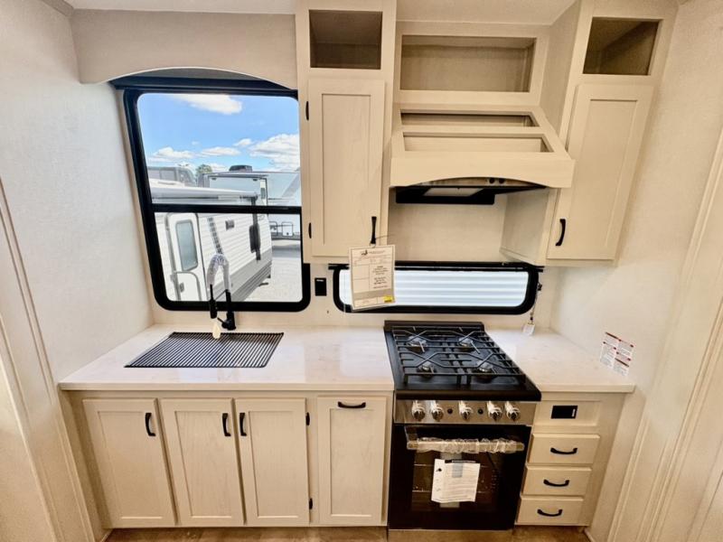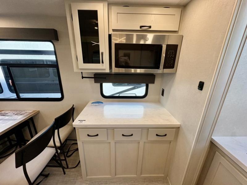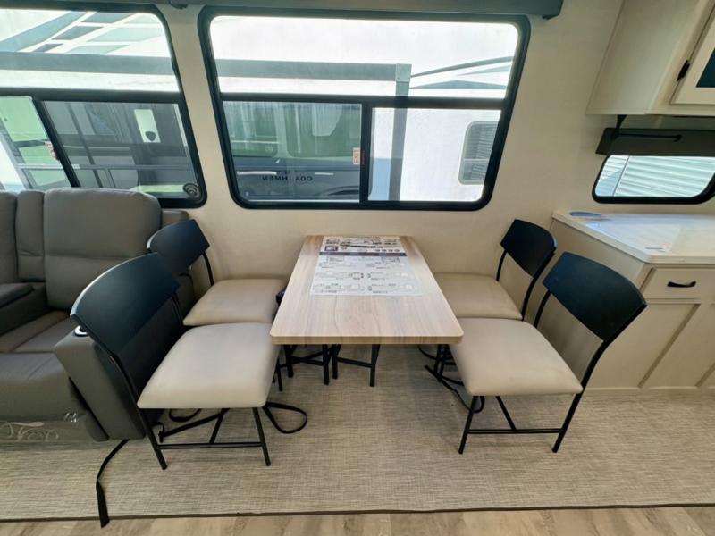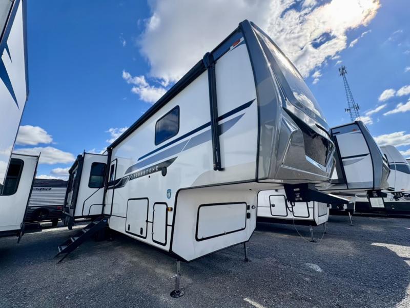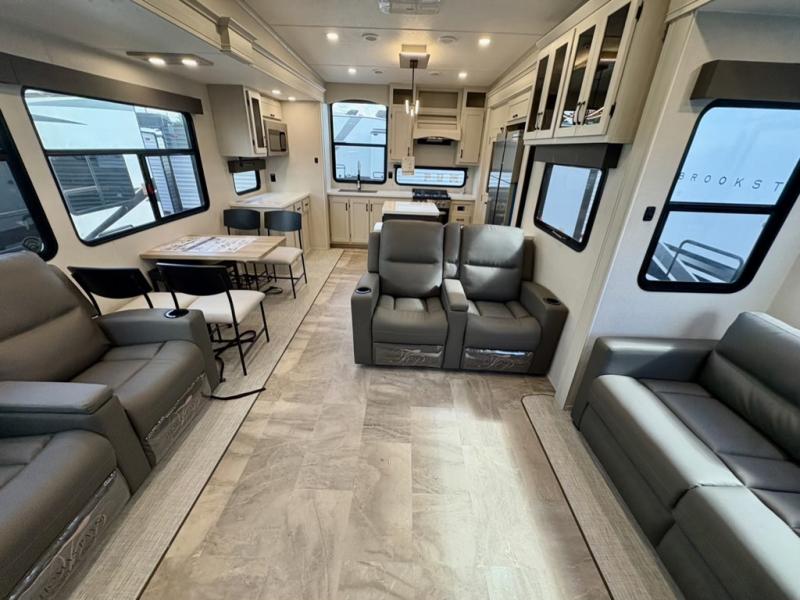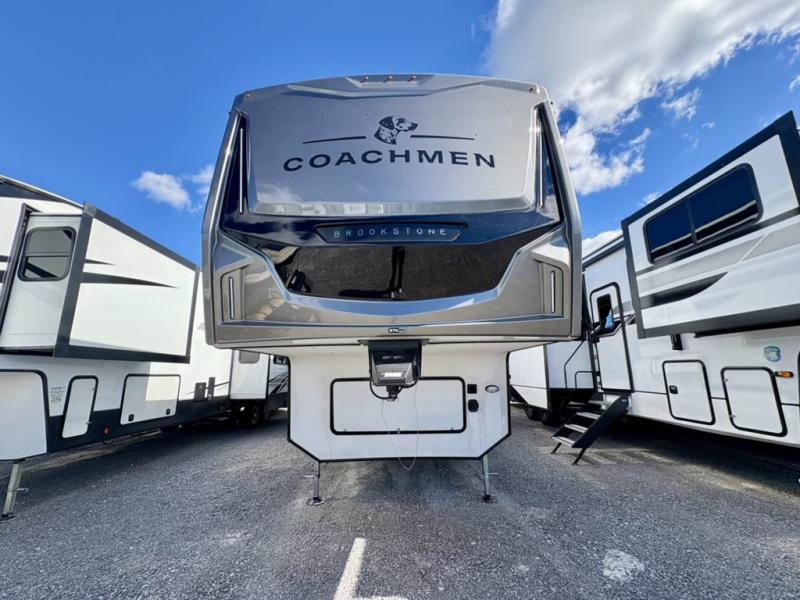 The Brookstone fifth wheels by Coachmen are coming to you with wide-body comfort, home-like amenities, and unique designs for a truly luxurious RV. The Weather Shield+ consists of a 6X double Azdel aluminum cage sidewall system, a Radiant Pro weather barrier system, and more that will help you extend your camping season or go full-time. Head inside to find solid surface countertops in the kitchen, an 4K Smart LED TV in the living room, slow rise roller night shades, and the list of comforts goes on! The Brookstone also includes 6-point electric auto-leveling, four Solid Step entry steps, an electric awning with LED lights, and many more exterior conveniences!