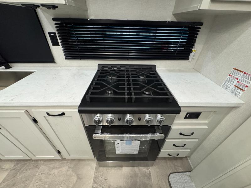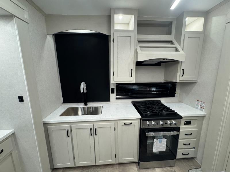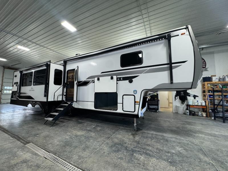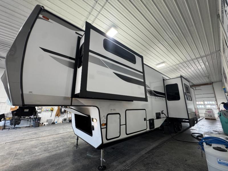 The Brookstone fifth wheels by Coachmen are coming to you with wide-body comfort, home-like amenities, and unique designs for a truly luxurious RV. The Weather Shield+ consists of a 6X double Azdel aluminum cage sidewall system, a Radiant Pro weather barrier system, and more that will help you extend your camping season or go full-time. Head inside to find solid surface countertops in the kitchen, an 4K Smart LED TV in the living room, slow rise roller night shades, and the list of comforts goes on! The Brookstone also includes 6-point electric auto-leveling, four Solid Step entry steps, an electric awning with LED lights, and many more exterior conveniences!