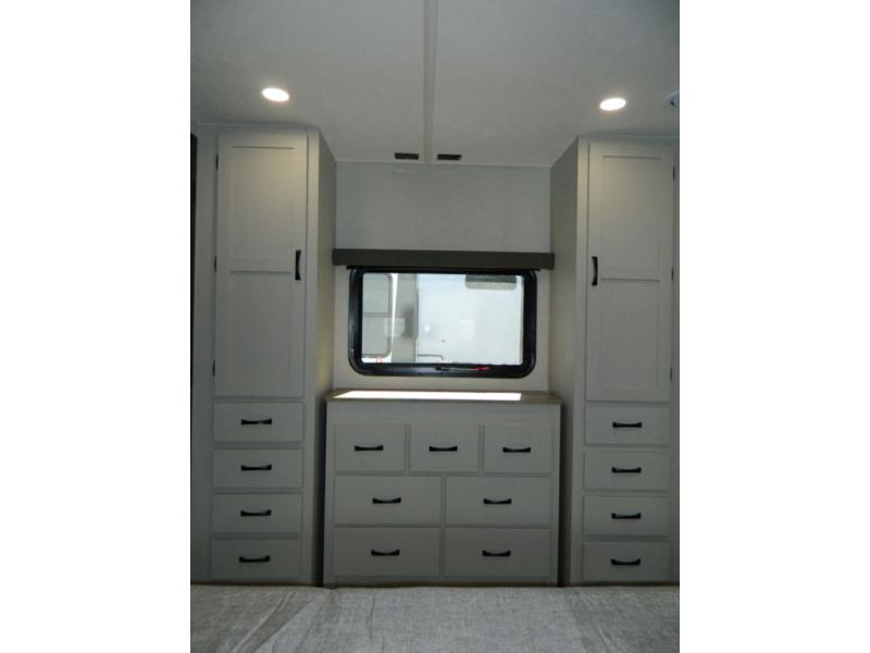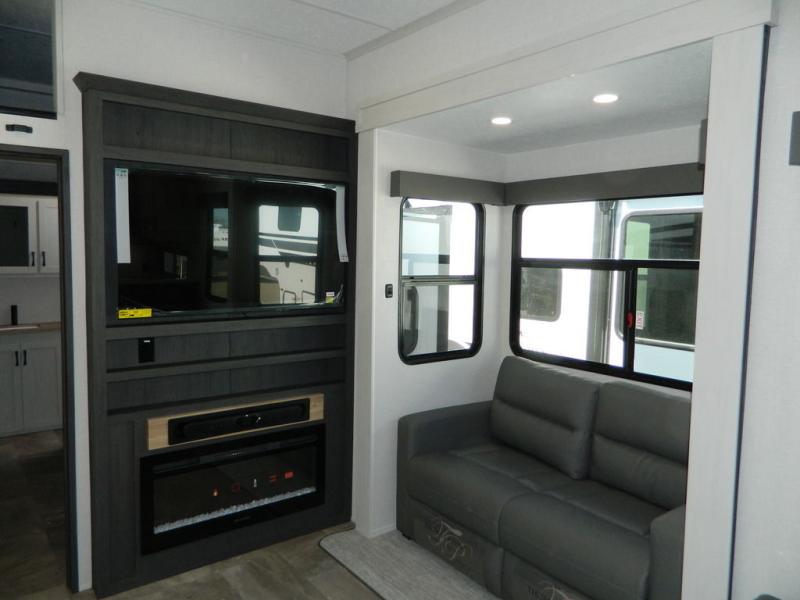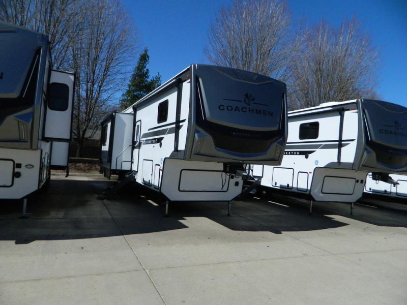The Brookstone fifth wheels by Coachmen are coming to you with wide-body comfort, home-like amenities, and unique designs for a truly luxurious RV. The Weather Shield+ consists of a 6X double Azdel aluminum cage sidewall system, a Radiant Pro weather barrier system and more, all built to keep you in your fifth wheel comfortable and capable in varying weather. Head inside to find solid surface countertops in the kitchen, an 4K Smart LED TV in the living room, slow rise blackout roller night shades, and the list of comforts goes on! The Brookstone also includes 6-point electric auto-leveling, four step MORryde StepAbove main entry, an electric awning with LED lights, and many more exterior conveniences!