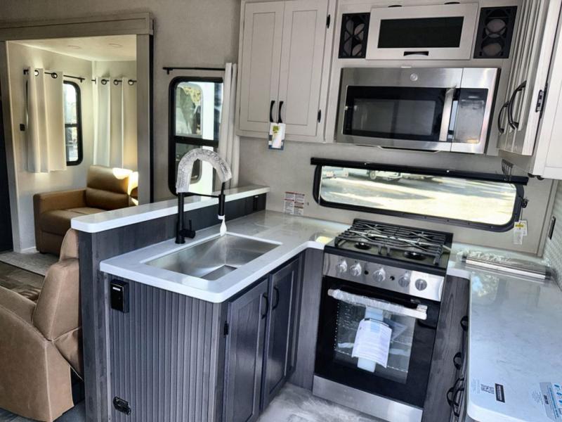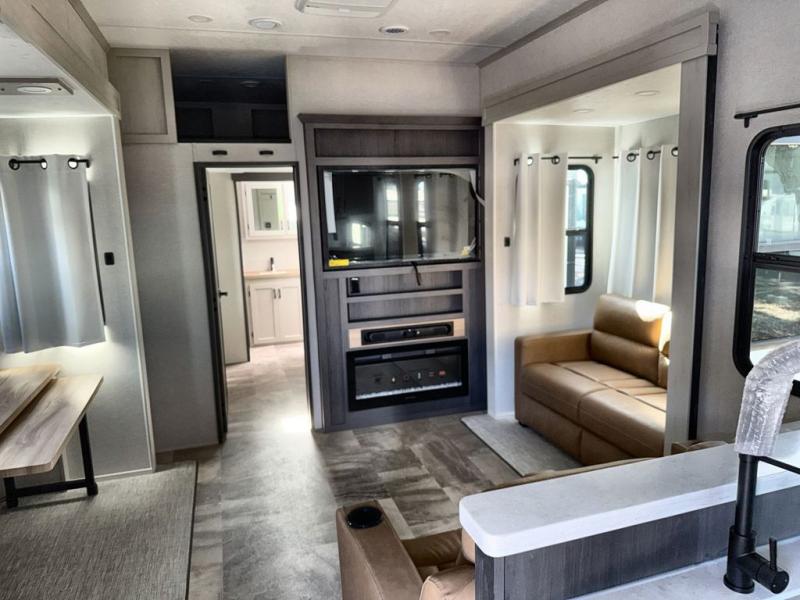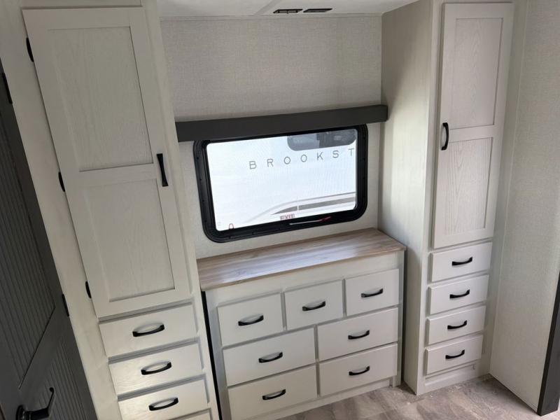 The Brookstone fifth wheels by Coachmen are coming to you with wide-body comfort, home-like amenities, and unique designs for a truly luxurious RV. The Weather Shield+ consists of a 6X double Azdel aluminum cage sidewall system, a Radiant Pro weather barrier system and more, all built to keep you in your fifth wheel comfortable and capable in varying weather. Head inside to find solid surface countertops in the kitchen, an 4K Smart LED TV in the living room, slow rise blackout roller night shades, and the list of comforts goes on! The Brookstone also includes 6-point electric auto-leveling, four step MORryde StepAbove main entry, an electric awning with LED lights, and many more exterior conveniences!