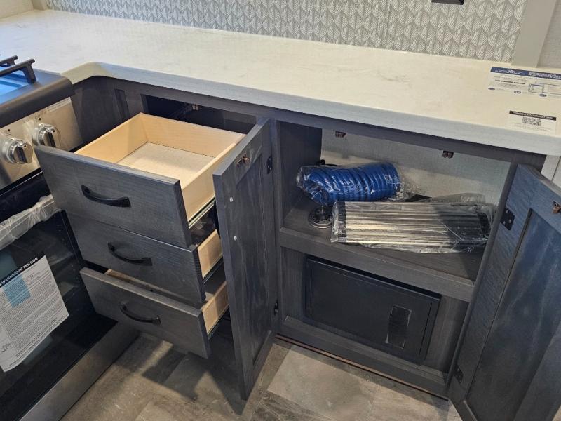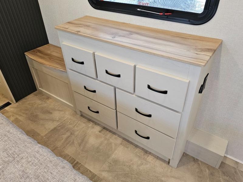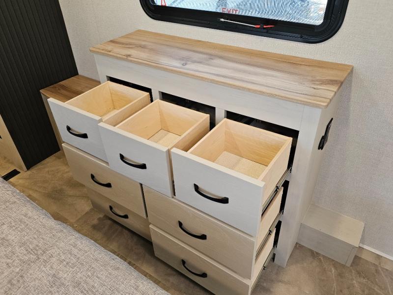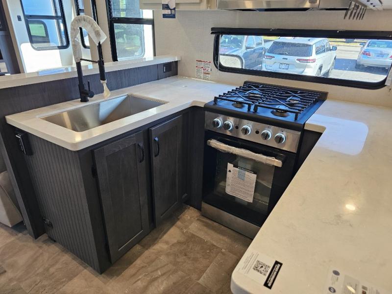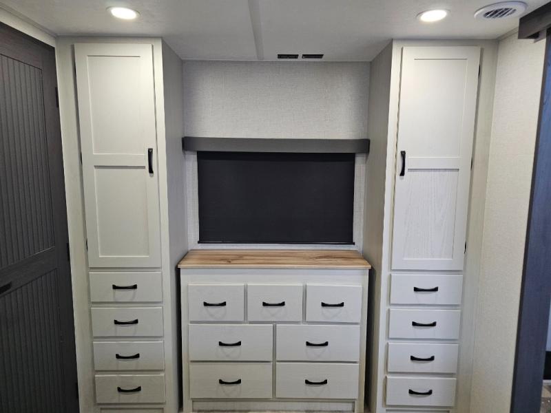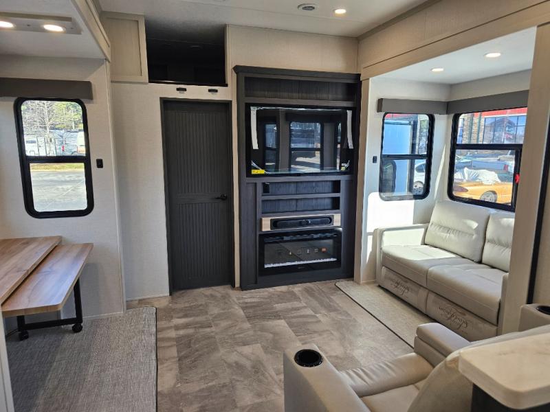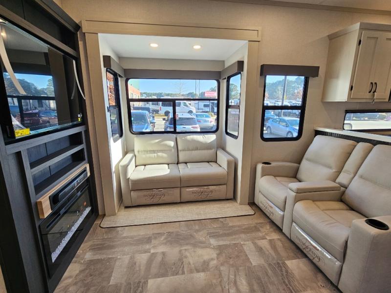 The Brookstone 395DBL is designed for families and full-timers who want true residential comfort on the road. With two private bedrooms, a loft, and two full bathrooms, this luxury fifth wheel offers the space, storage, and thoughtful design to make every trip feel like home.