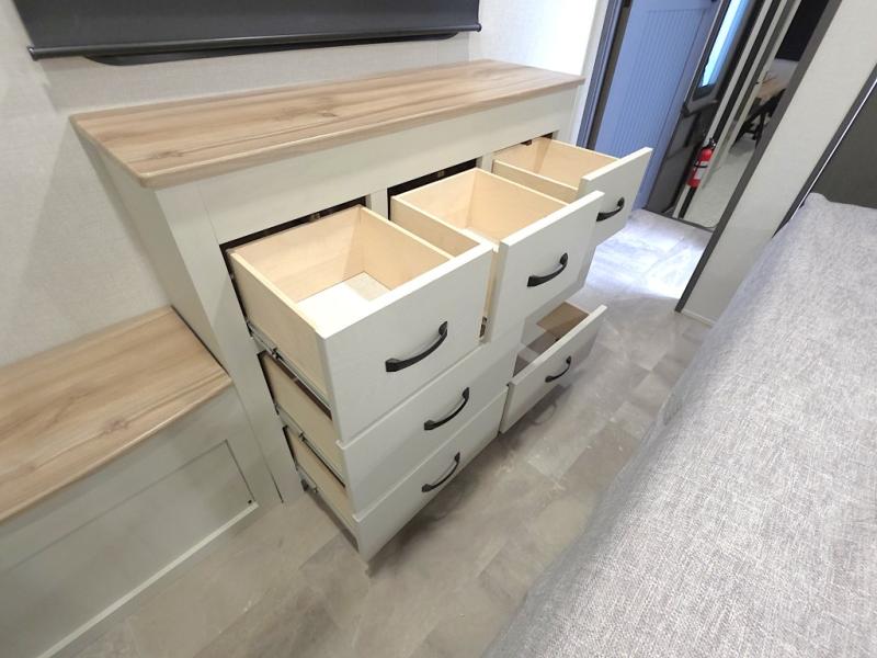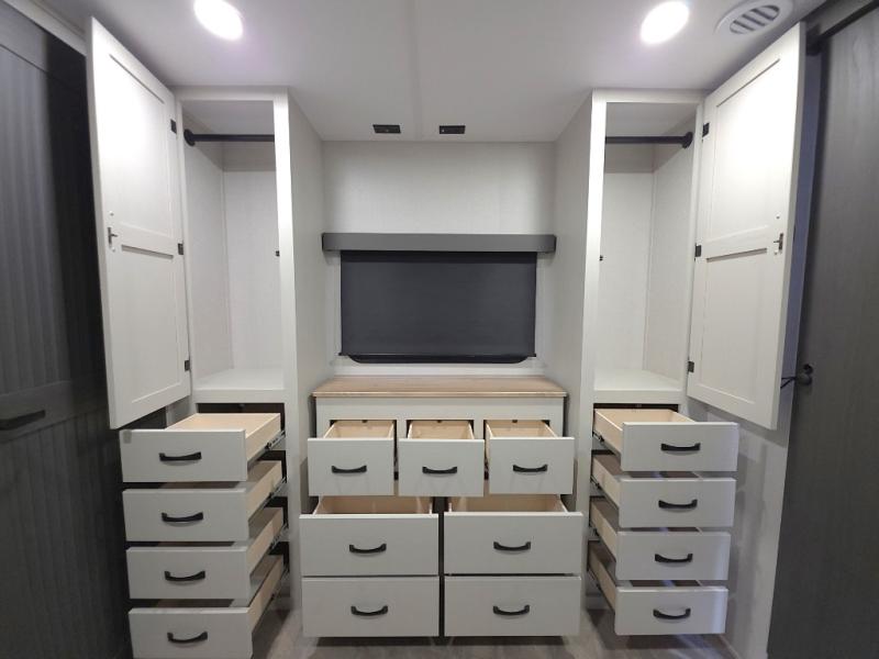 Enjoy slow rise blackout roller shades, 4K Smart LED TV, residential finishes, and thoughtful storage options that make every trip feel like home.