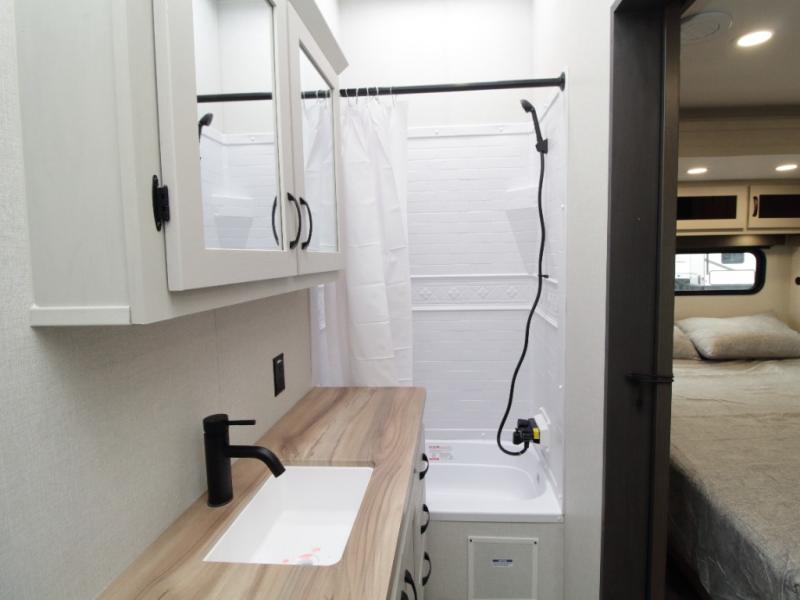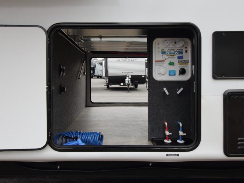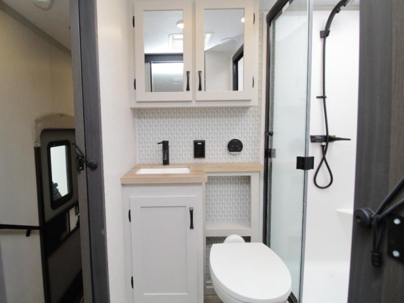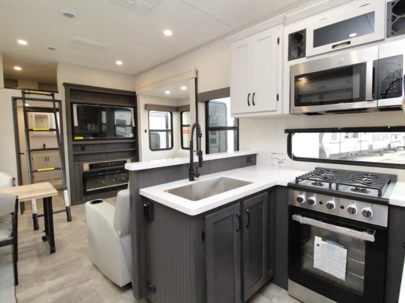 Coachmen Brookstone fifth wheels are built with wide-body construction and premium residential amenities. The Weather Shield+ package includes a 6X double Azdel aluminum cage sidewall system and a Radiant Pro weather barrier designed to deliver comfort in a wide range of climates. Inside, you’ll find solid-surface kitchen countertops, a 4K Smart LED TV, and slow-rise blackout roller night shades throughout.