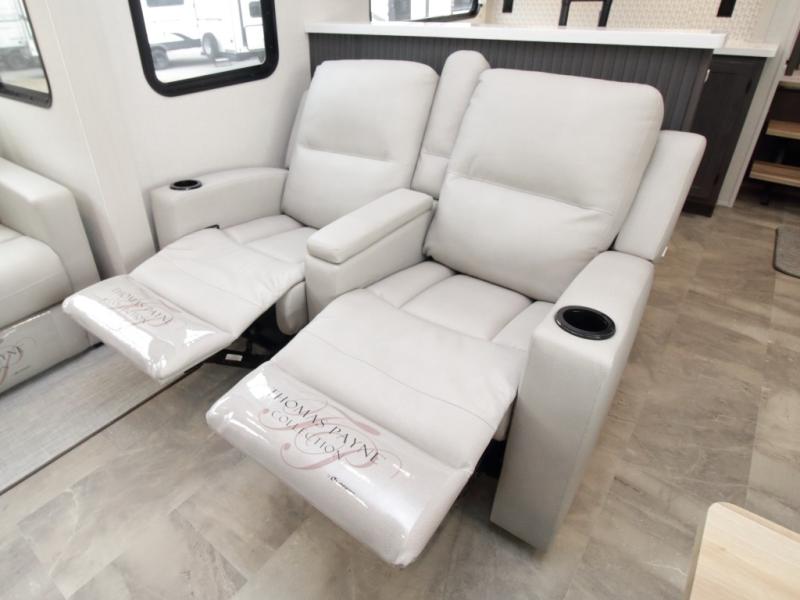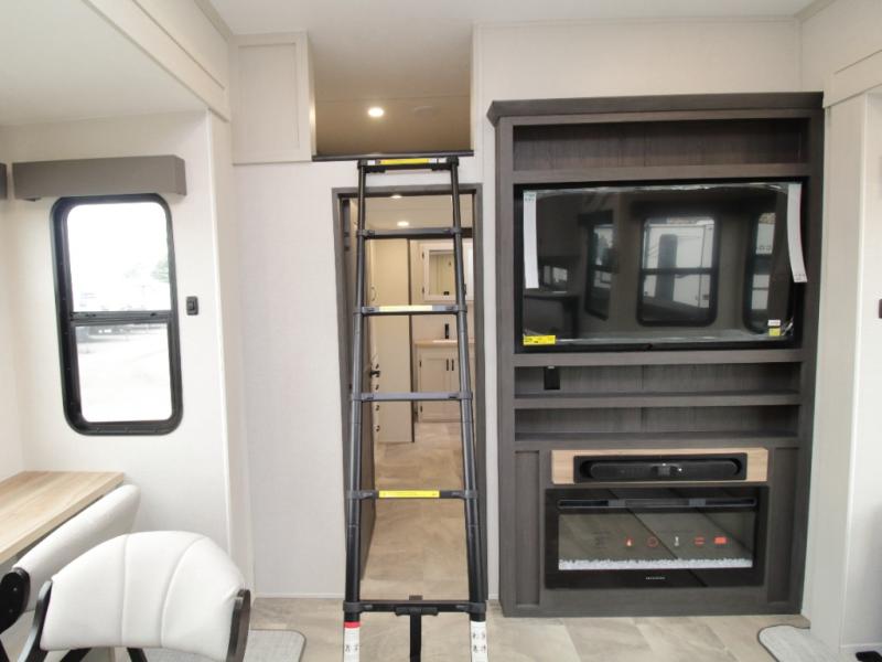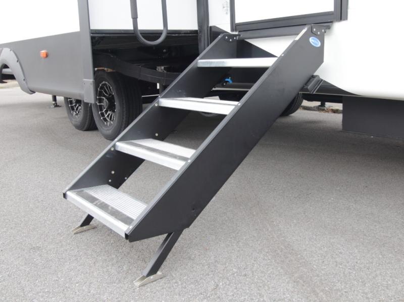 Exterior conveniences include a 6-point electric auto-leveling system, MORryde StepAbove entry steps, an electric awning with LED lighting, and numerous storage and usability enhancements. With its dual bedrooms, loft, and two full bathrooms, the Coachmen Brookstone 395DBL is an exceptional choice for those seeking luxury, space, and versatility in a fifth wheel.