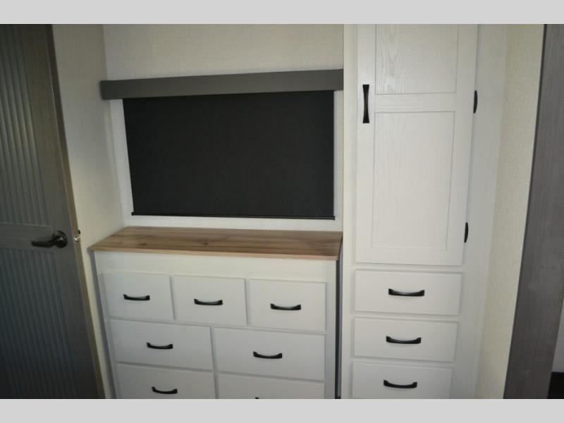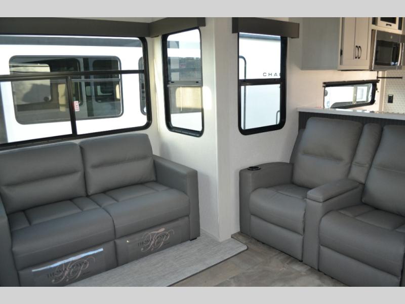 The Brookstone fifth wheels by Coachmen are coming to you with wide-body comfort, home-like amenities, and unique designs for a truly luxurious RV. The Weather Shield+ consists of a 6X double Azdel aluminum cage sidewall system, a Radiant Pro weather barrier system and more, all built to keep you in your fifth wheel comfortable and capable in varying weather. Head inside to find solid surface countertops in the kitchen, an 4K Smart LED TV in the living room, slow rise blackout roller night shades, and the list of comforts goes on! The Brookstone also includes 6-point electric auto-leveling, four step MORryde StepAbove main entry, an electric awning with LED lights, and many more exterior conveniences!