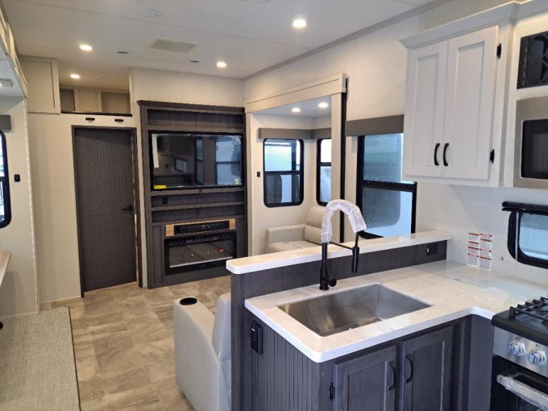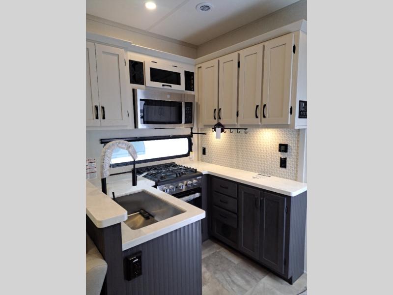 The Brookstone fifth wheels by Coachmen are coming to you with wide-body comfort, home-like amenities, and unique designs for a truly luxurious RV. The Weather Shield+ consists of a 6X double Azdel aluminum cage sidewall system, a Radiant Pro weather barrier system and more, all built to keep you in your fifth wheel comfortable and capable in varying weather. Head inside to find solid surface countertops in the kitchen, an 4K Smart LED TV in the living room, slow rise blackout roller night shades, and the list of comforts goes on! The Brookstone also includes 6-point electric auto-leveling, four step MORryde StepAbove main entry, an electric awning with LED lights, and many more exterior conveniences!