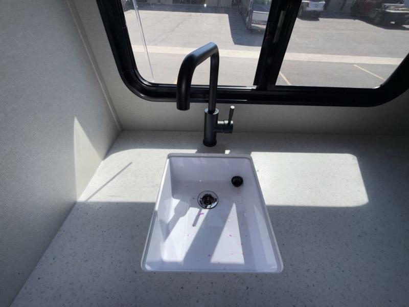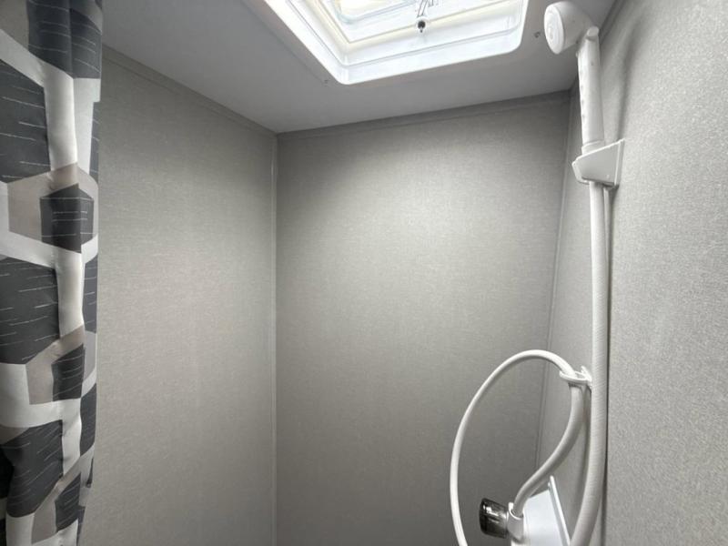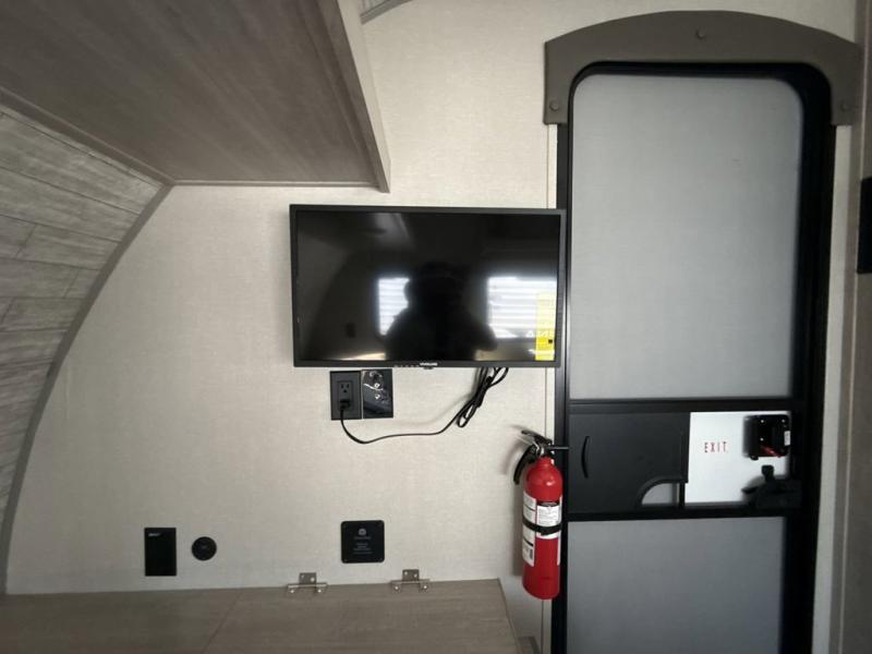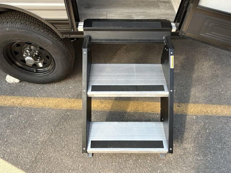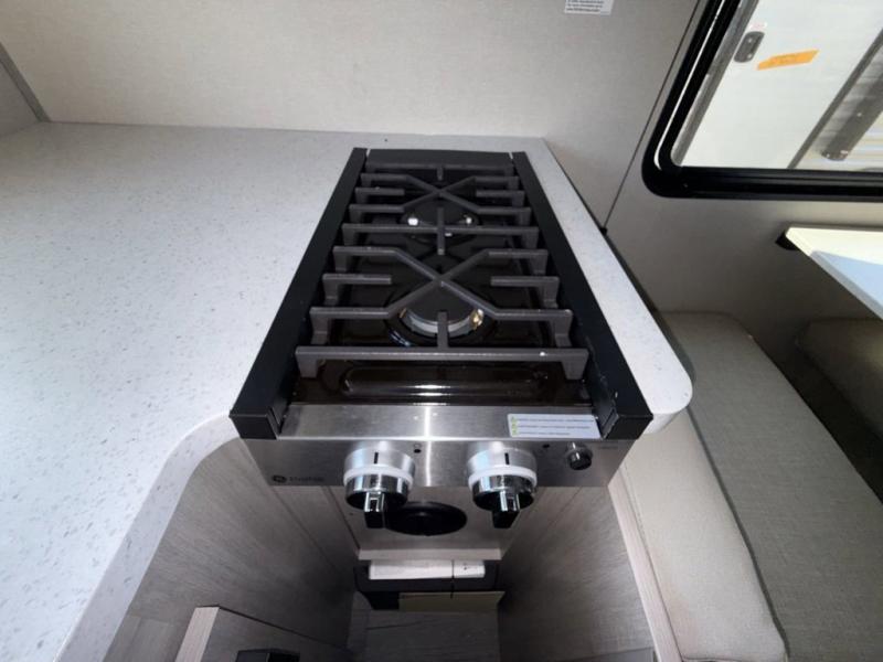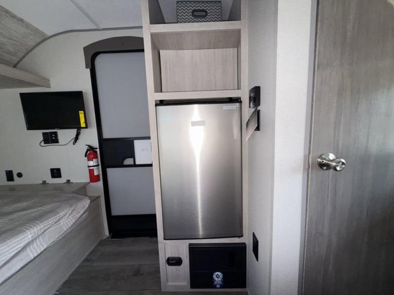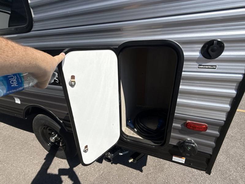 Lightweight camping is easier than you think with this travel trailer in tow! The front 54" x 74" queen bed will provide a great night's rest each night, while your overnight guest takes the 60" Jack knife sofa. There is a handy shelf above the front bed for your belongings plus a shelf with bins over the sofa. A private bath includes a 24" x 32" shower and a toilet with a mirror behind it so you can freshen up each day. You'll also find a two burner cooktop and microwave oven to make meals each day plus a 3.3 cu. ft. 12V refrigerator for food storage!