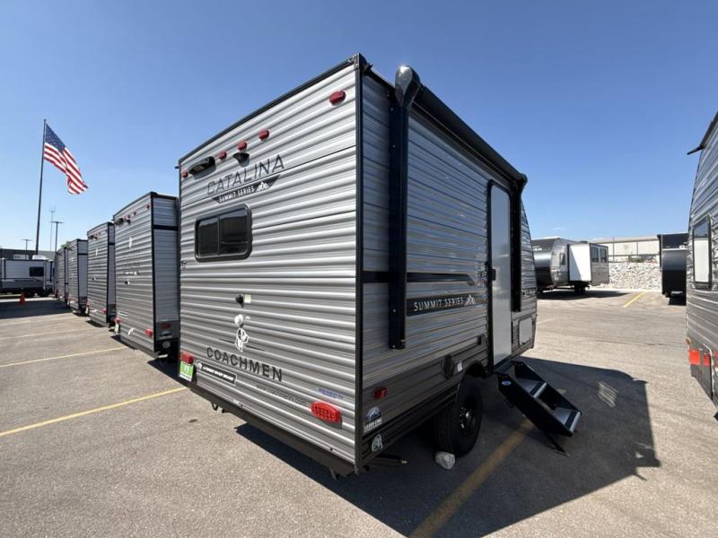With any Catalina Summit Series 7' by Coachmen RV, you can create an easier adventure with the versatility and simplicity of the shorter lengths and lighter weights! Each includes a premium exterior graphics package, a smooth HD aluminum radius front, and EZ lube axles with leaf spring suspension. The exterior offers a heavy duty standard tongue jack, a diamond plate rock guard to protect against road debris, exterior RG-6 coax cabling and satellite prep, rear view camera prep, and flush mount baggage doors with radius corners for your outdoor gear. Inside, you will enjoy a premium JBL interior speaker, USB charging ports, seamless Thermofoil countertops throughout, a deep basin farm style sink for easy cleanup, and GE kitchen appliances. It's time to choose an affordable and maneuverable single axle trailer today!