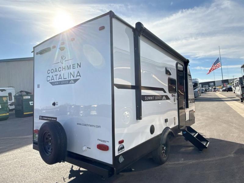 With any Catalina Summit Series 7' by Coachmen RV, you can create an easier adventure with the versatility and simplicity of the shorter lengths and lighter weights! Each includes a premium exterior graphics package, a smooth HD aluminum radius front, and EZ lube axles with leaf spring suspension. The exterior offers a heavy duty standard tongue jack, a diamond plate rock guard to protect against road debris, exterior RG-6 coax cabling and satellite prep, rear view camera prep, and flush mount baggage doors with radius corners for your outdoor gear. Inside, you will enjoy a premium JBL interior speaker, USB charging ports, seamless Thermofoil countertops throughout, a deep basin farm style sink for easy cleanup, and GE kitchen appliances. It's time to choose an affordable and maneuverable single axle trailer today!