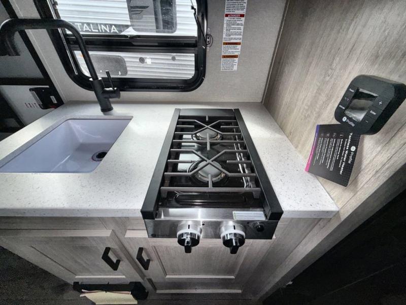 With any Catalina Summit Series 7' by Coachmen RV, you can create an easier adventure with the versatility and simplicity of the shorter lengths and lighter weights! Each includes a premium exterior graphics package, a smooth HD aluminum radius front, and EZ lube axles with leaf spring suspension. The exterior offers a heavy duty standard tongue jack, a diamond plate rock guard to protect against road debris, exterior RG-6 coax cabling and satellite prep, rear view camera prep, and flush mount baggage doors with radius corners for your outdoor gear. Inside, you will enjoy a premium JBL interior speaker, USB charging ports, seamless Thermofoil countertops throughout, a deep basin farm style sink for easy cleanup, and GE kitchen appliances. It's time to choose an affordable and maneuverable single axle trailer today!