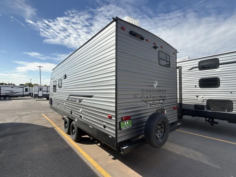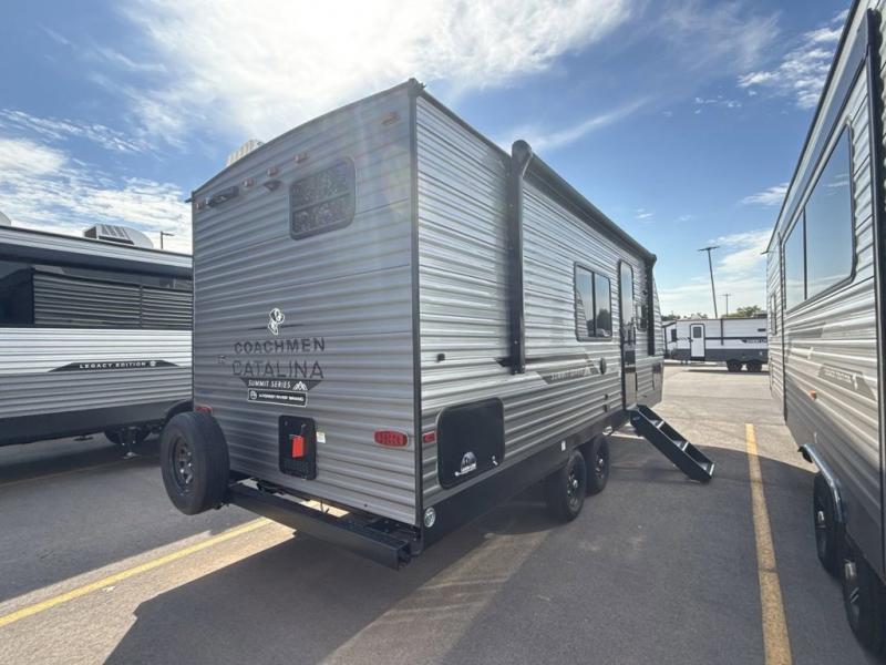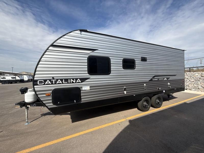 With any Catalina Summit Series 8 by Coachmen you will enjoy an affordable travel trailer packed with at-home comforts! The solid construction includes a Norco electromagnetic powder coated chassis, a seamless Alpha roof membrane, and full length frame outriggers for maximum support and durability. EZ lube axles with leaf spring suspension and self-adjusting brakes provide smooth towing from home to campground, and the premium exterior graphics package is sure to turn heads as you travel down the highway. You will love the features included, such as a JBL Aura Cube media center, magnetic baggage door latches, 4,000 lumen interior touch lighting, and the list goes on!
