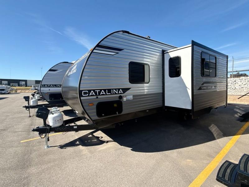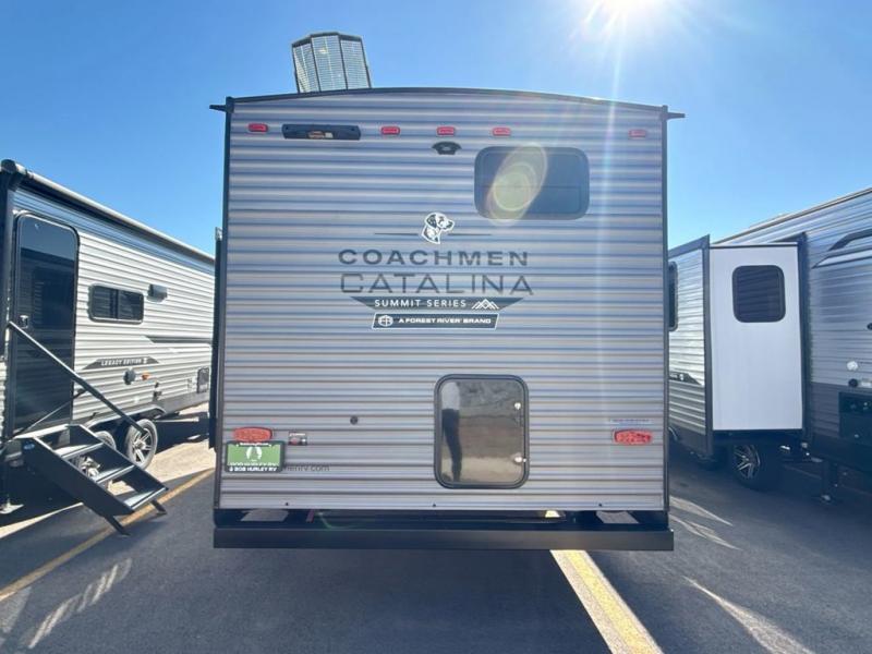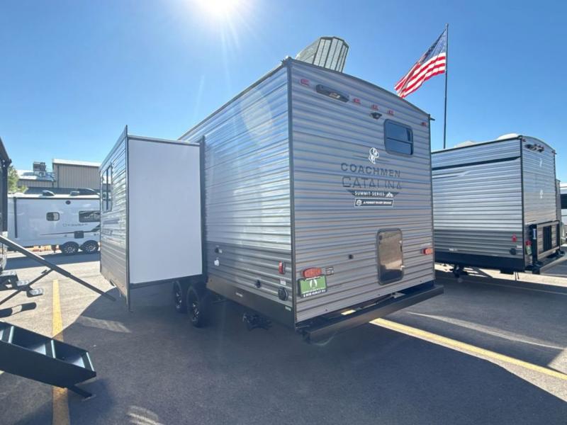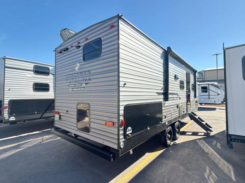 With any Catalina Summit Series 8 by Coachmen you will enjoy an affordable travel trailer packed with at-home comforts! The solid construction includes a Norco electromagnetic powder coated chassis, a seamless Alpha roof membrane, and full length frame outriggers for maximum support and durability. EZ lube axles with leaf spring suspension and self-adjusting brakes provide smooth towing from home to campground, and the premium exterior graphics package is sure to turn heads as you travel down the highway. You will love the features included, such as a JBL Aura Cube media center, magnetic baggage door latches, 4,000 lumen interior touch lighting, and the list goes on!