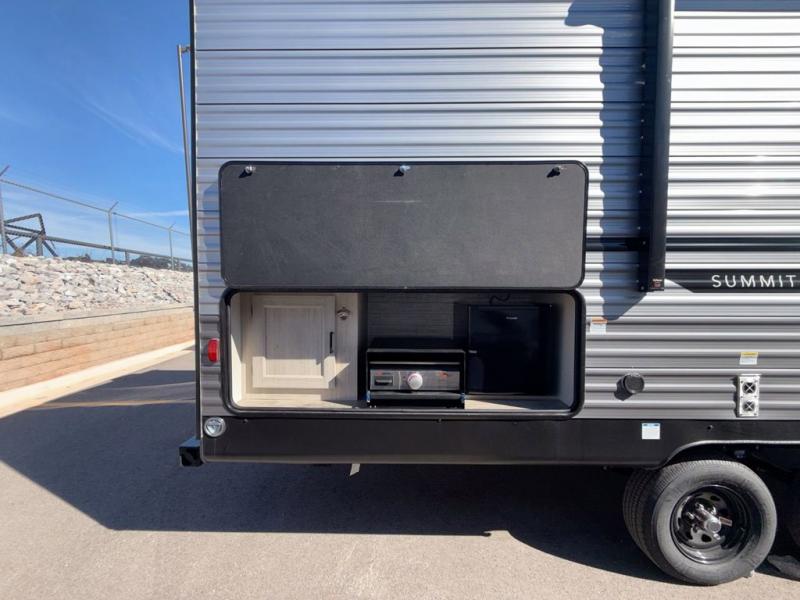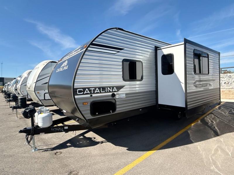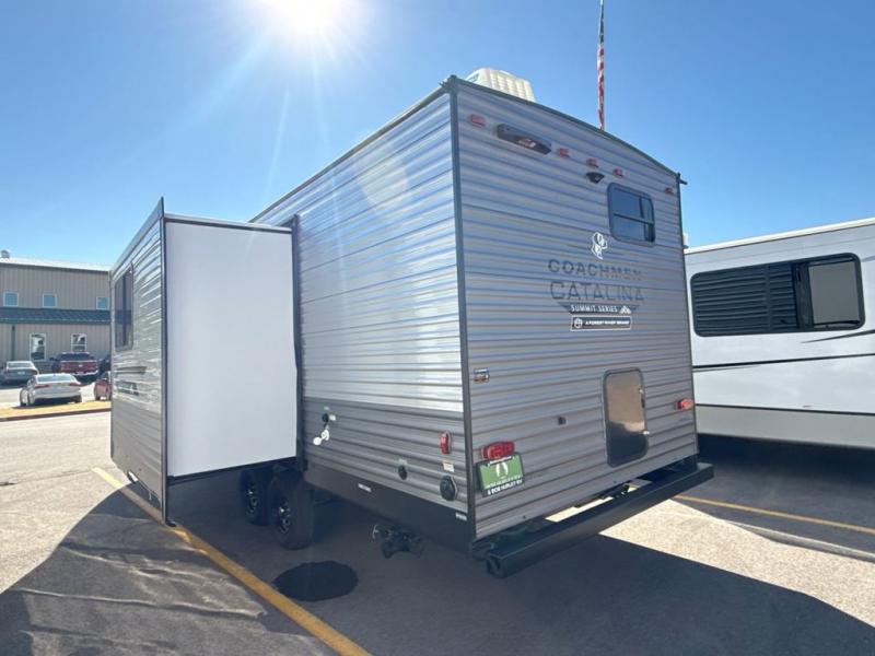 With any Catalina Summit Series 8 by Coachmen you will enjoy an affordable travel trailer packed with at-home comforts! The solid construction includes a Norco electromagnetic powder coated chassis, a seamless Alpha roof membrane, and full length frame outriggers for maximum support and durability. EZ lube axles with leaf spring suspension and self-adjusting brakes provide smooth towing from home to campground, and the premium exterior graphics package is sure to turn heads as you travel down the highway. You will love the features included, such as a JBL Aura Cube media center, magnetic baggage door latches, 4,000 lumen interior touch lighting, and the list goes on!