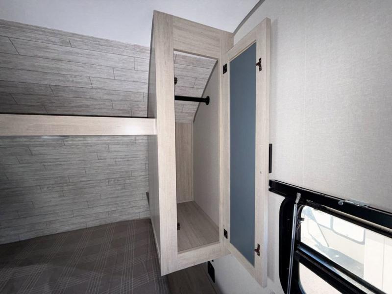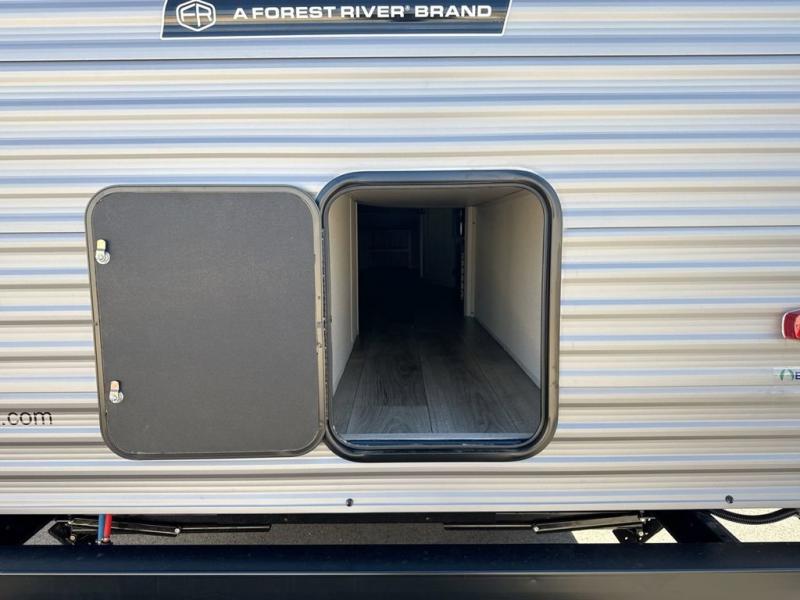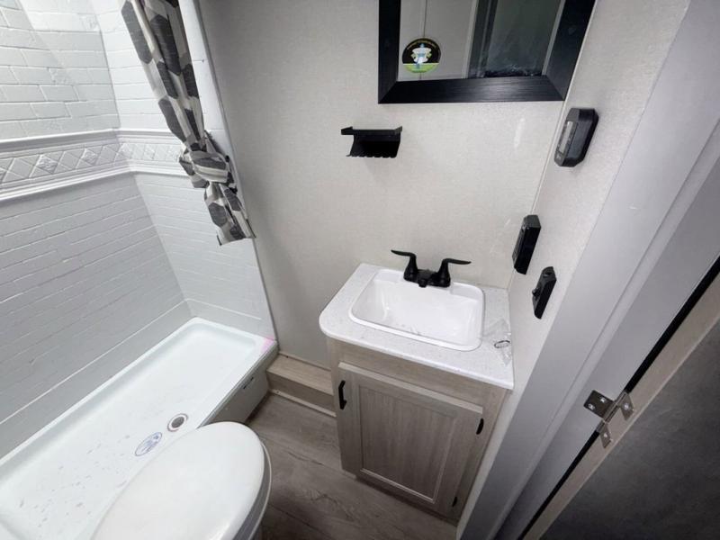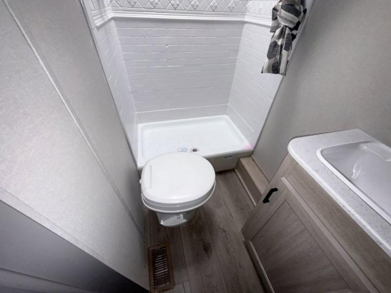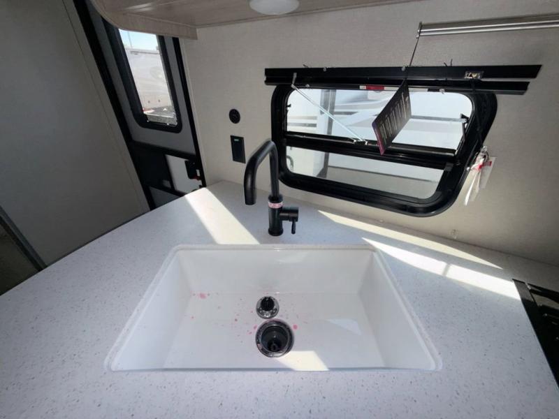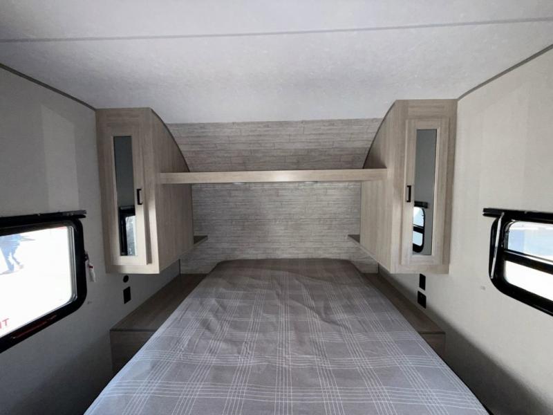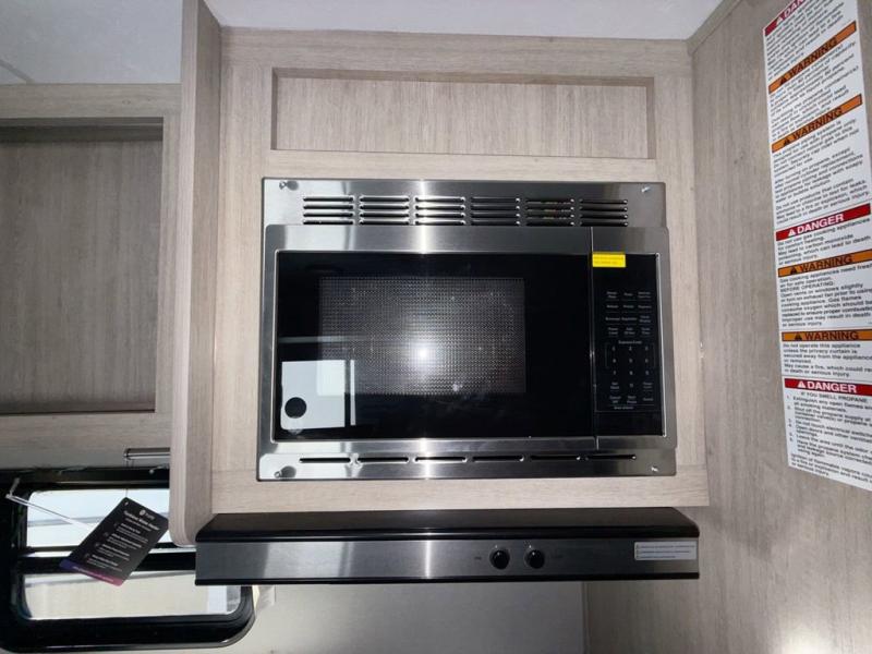 This is the perfect mid-size travel trailer for you and your family! The double-size bunks offer a comfortable sleeping space for the kids and you will have your own private sleeping space with a queen bed in the front bedroom. Freshen up each day in the rear corner bathroom with the tub/shower and a mirror to get ready each morning. You can prepare your best home cooked meals with the GE stainless three burner cooktop and GE stainless 10.7 cu. ft. 12V refrigerator, then enjoy them together at the u-shaped dinette. There is also a large pantry to store all your goods. Don't leave any of your outdoor gear behind either, thanks to the front pass-through storage area and the exterior outside storage area. You could even add the optional outside camper kitchen to grill the catch of the day on the pull out griddle!