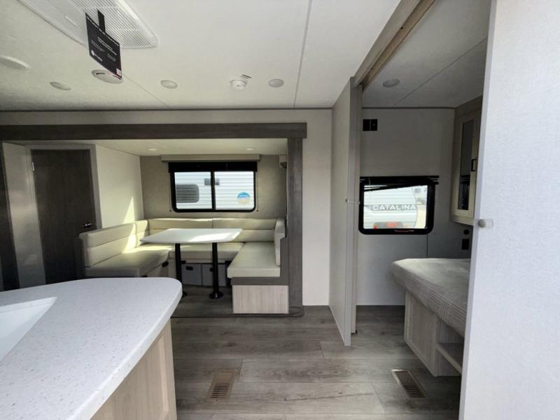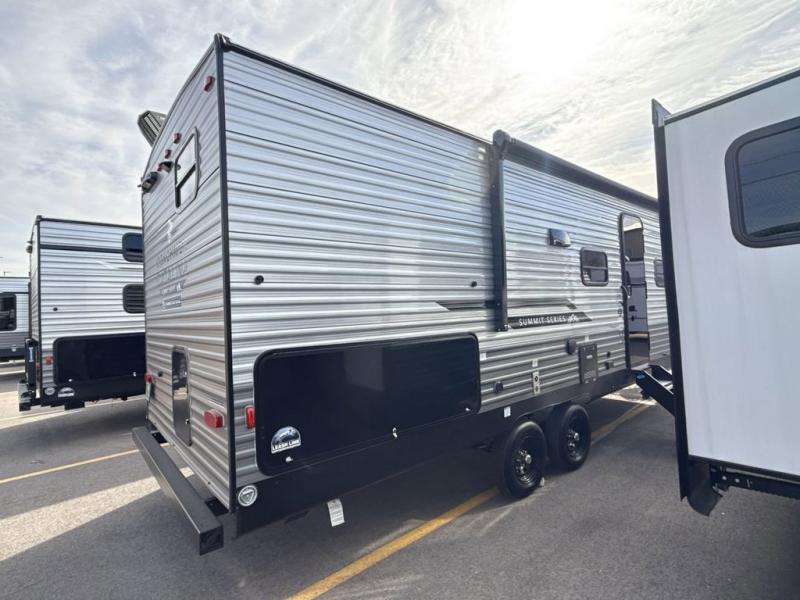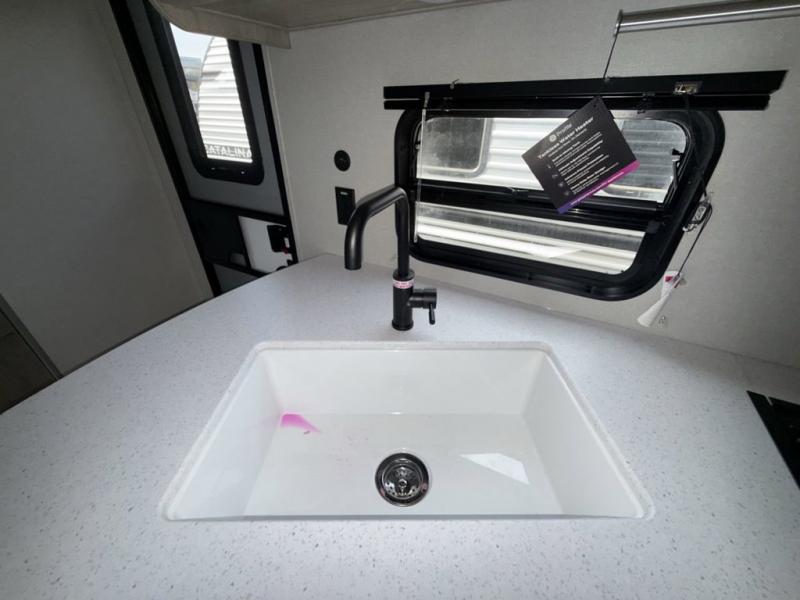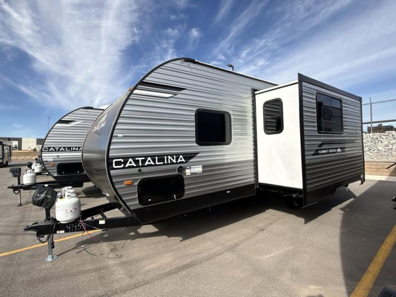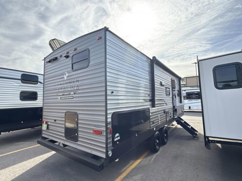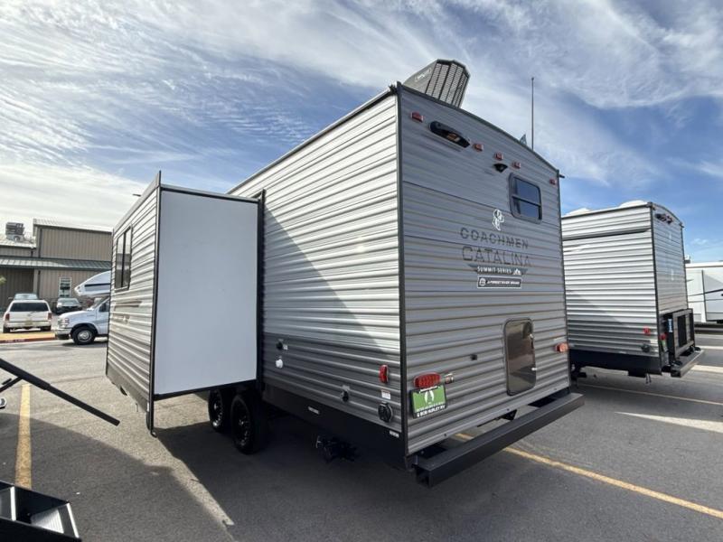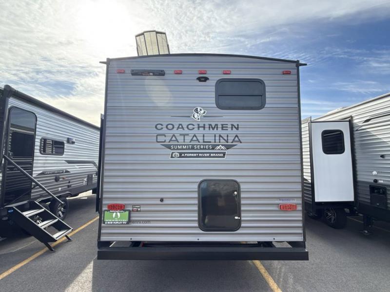 With any Catalina Summit Series 8 by Coachmen you will enjoy an affordable travel trailer packed with at-home comforts! The solid construction includes a Norco electromagnetic powder coated chassis, a seamless Alpha roof membrane, and full length frame outriggers for maximum support and durability. EZ lube axles with leaf spring suspension and self-adjusting brakes provide smooth towing from home to campground, and the premium exterior graphics package is sure to turn heads as you travel down the highway. You will love the features included, such as a JBL Aura Cube media center, magnetic baggage door latches, 4,000 lumen interior touch lighting, and the list goes on!