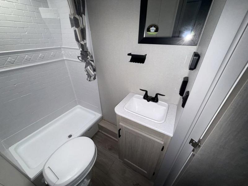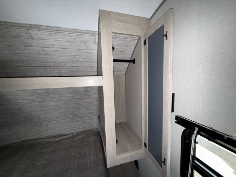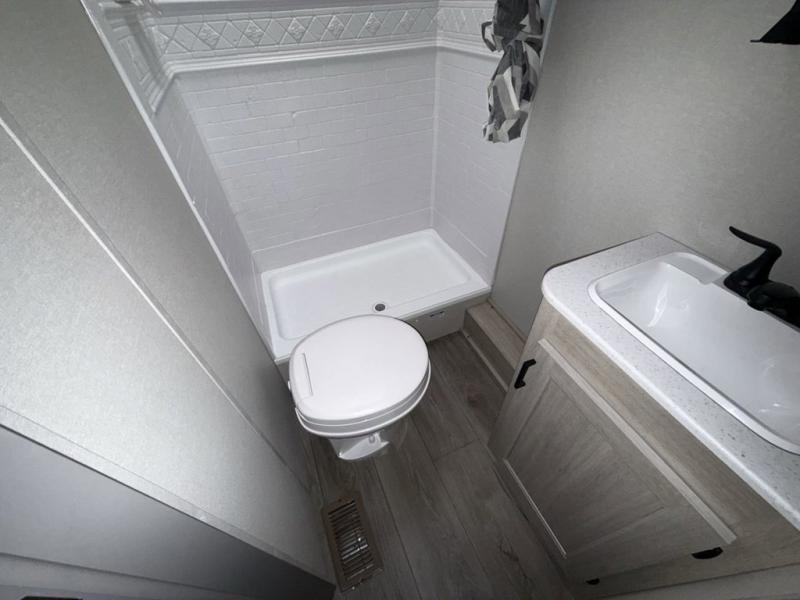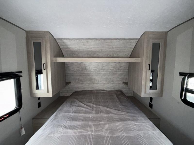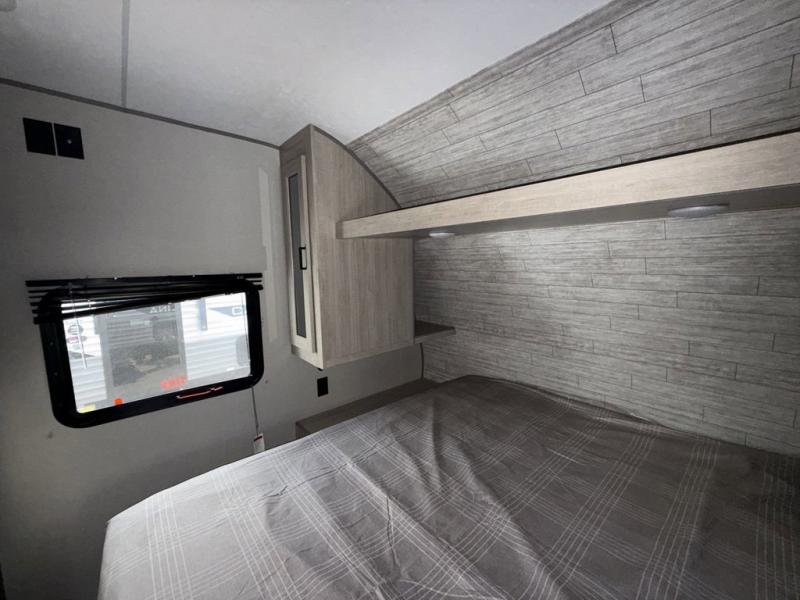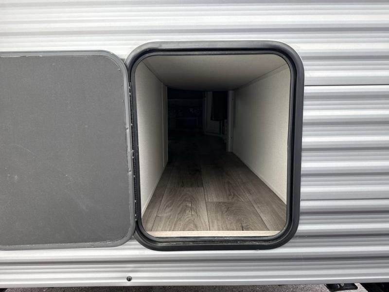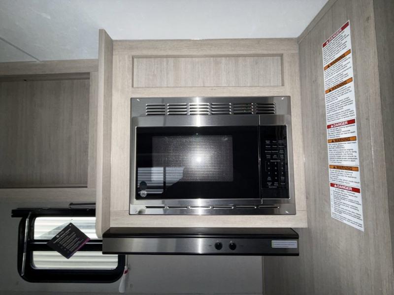 This is the perfect mid-size travel trailer for you and your family! The double-size bunks offer a comfortable sleeping space for the kids and you will have your own private sleeping space with a queen bed in the front bedroom. Freshen up each day in the rear corner bathroom with the tub/shower and a mirror to get ready each morning. You can prepare your best home cooked meals with the GE stainless three burner cooktop and GE stainless 10.7 cu. ft. 12V refrigerator, then enjoy them together at the u-shaped dinette. There is also a large pantry to store all your goods. Don't leave any of your outdoor gear behind either, thanks to the front pass-through storage area and the exterior outside storage area. You could even add the optional outside camper kitchen to grill the catch of the day on the pull out griddle!