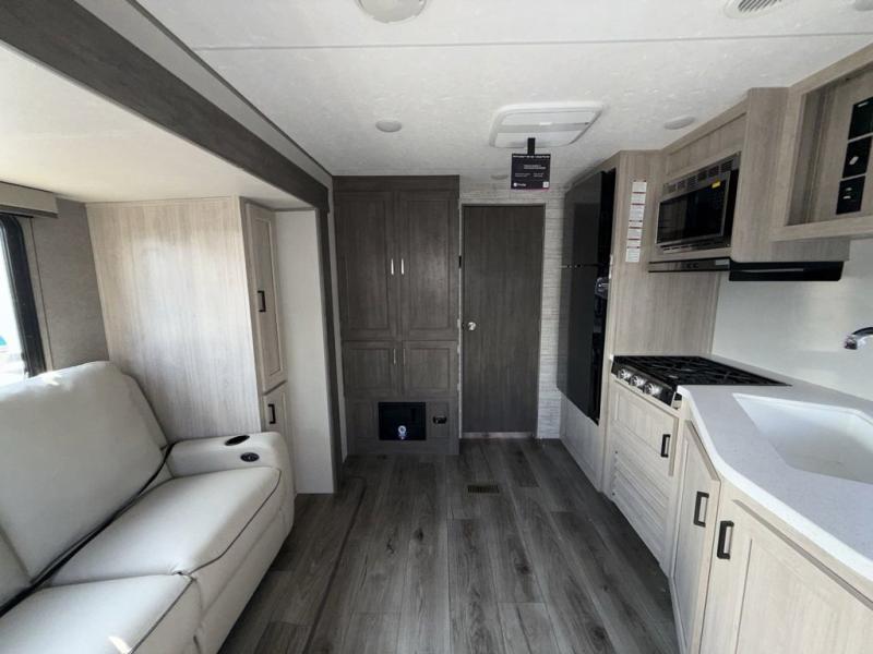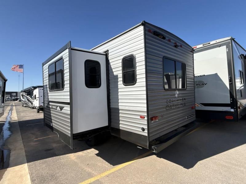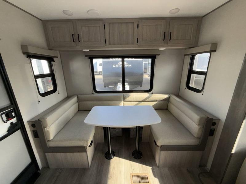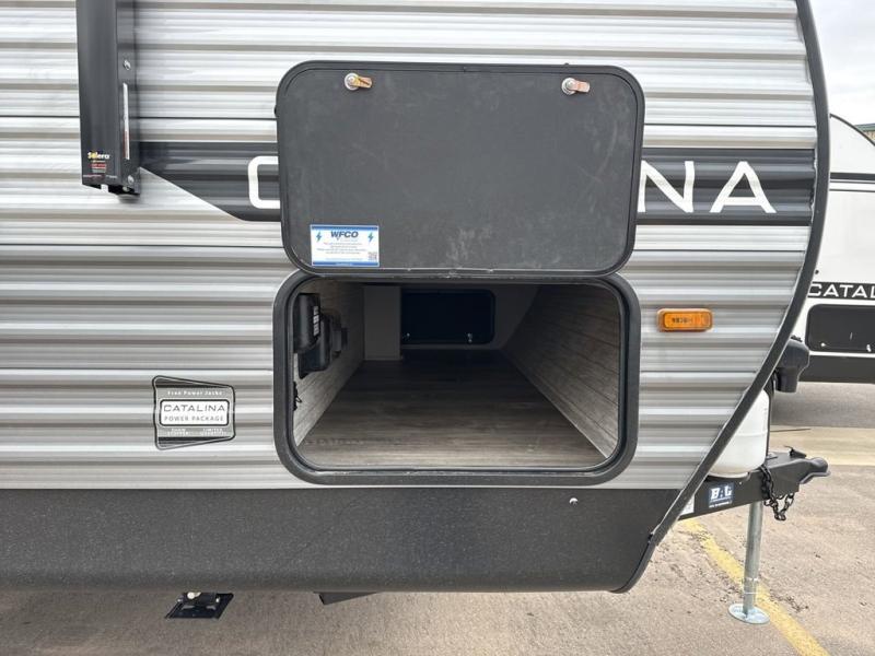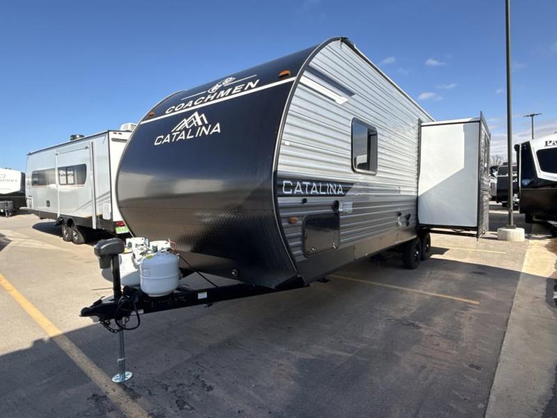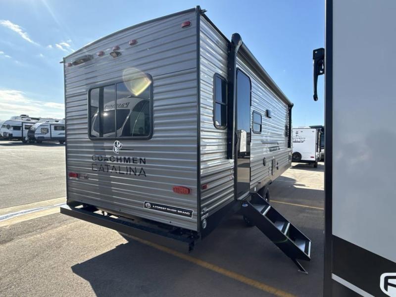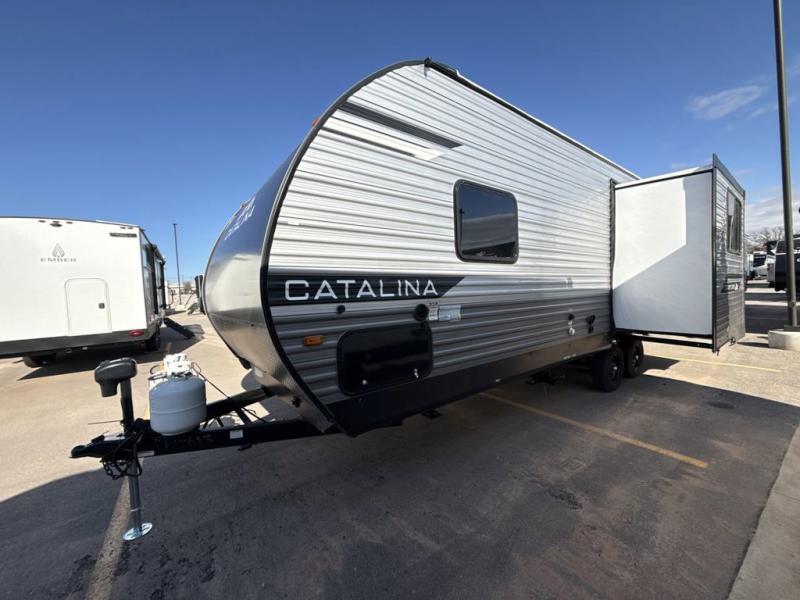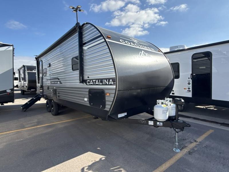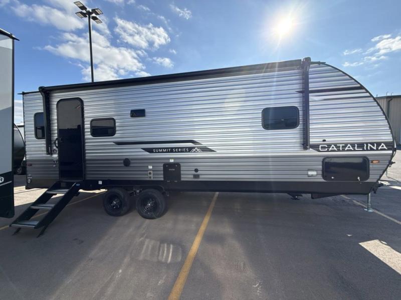 With any Catalina Summit Series 8 by Coachmen you will enjoy an affordable travel trailer packed with at-home comforts! The solid construction includes a Norco electromagnetic powder coated chassis, a seamless Alpha roof membrane, and full length frame outriggers for maximum support and durability. EZ lube axles with leaf spring suspension and self adjusting brakes provide smooth towing from home to campground, and the premium exterior graphics package is sure to turn heads as you travel down the highway. You will love the features included, such as a JBL Aura Cube media center, magnetic baggage door latches, 4,000 lumen interior touch lighting, and the list goes on!