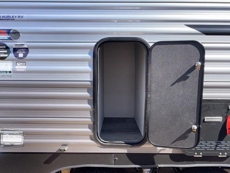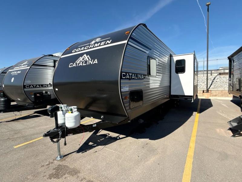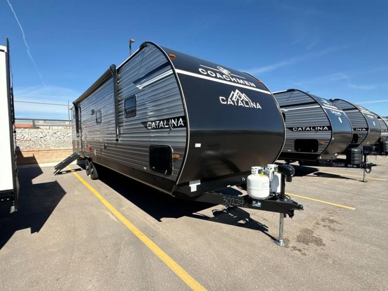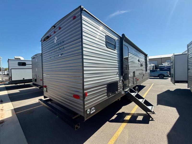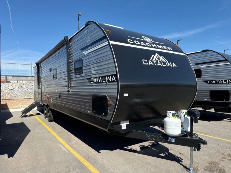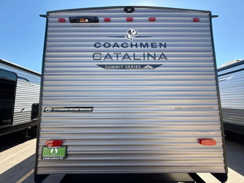With any Catalina Summit Series 8 by Coachmen you will enjoy an affordable travel trailer packed with at-home comforts! The solid construction includes a Norco electromagnetic powder coated chassis, a seamless Alpha roof membrane, and full length frame outriggers for maximum support and durability. EZ lube axles with leaf spring suspension and self adjusting brakes provide smooth towing from home to campground, and the premium exterior graphics package is sure to turn heads as you travel down the highway. You will love the features included, such as a JBL Aura Cube media center, magnetic baggage door latches, 4,000 lumen interior touch lighting, and the list goes on!