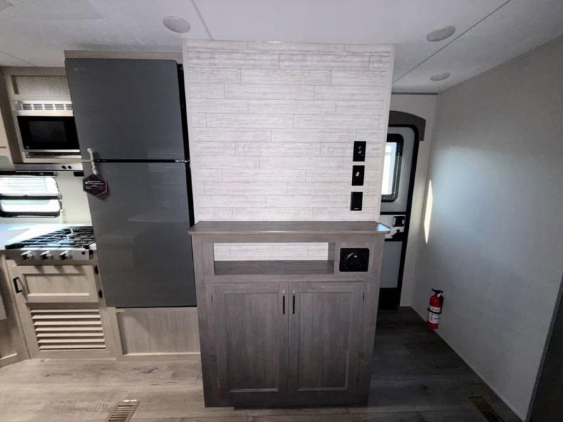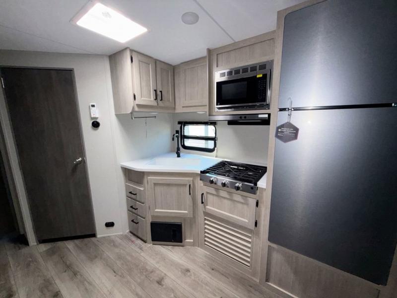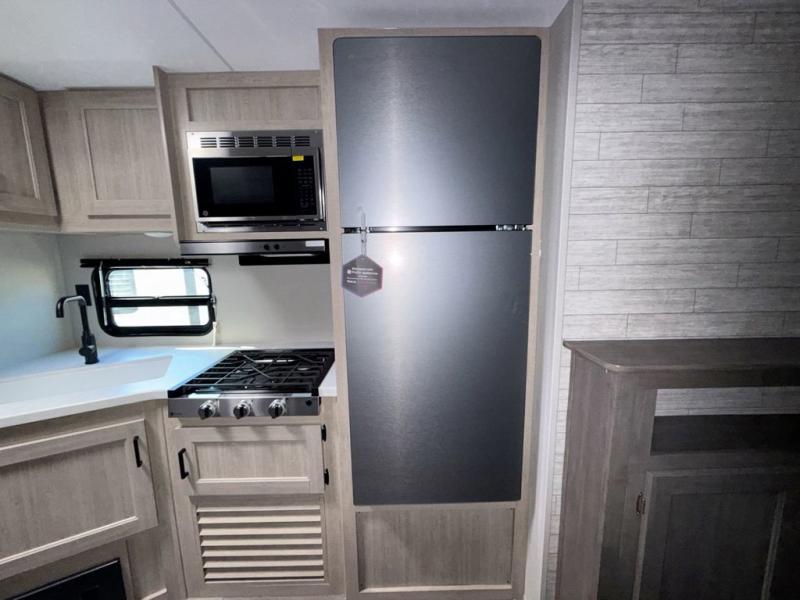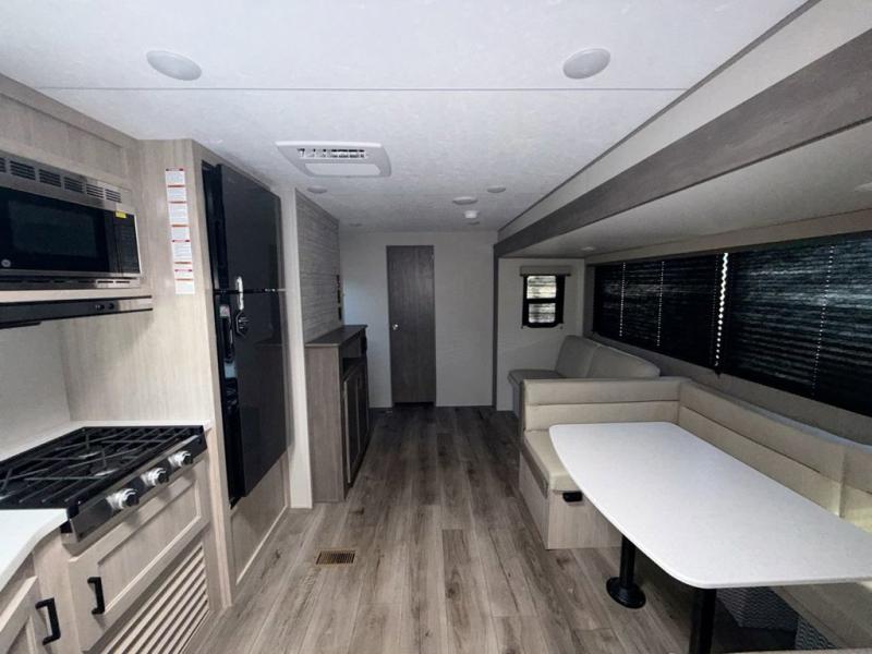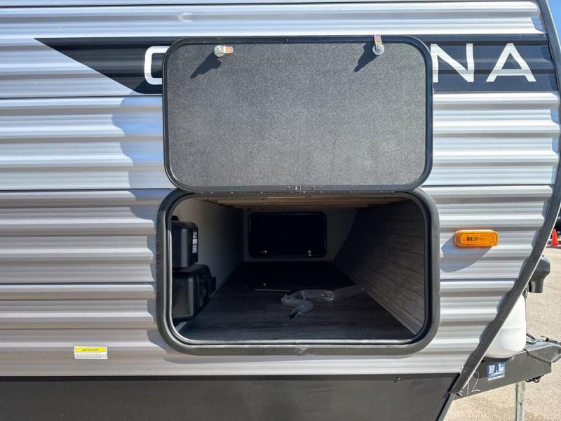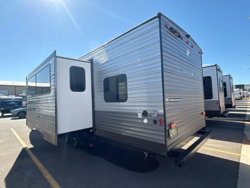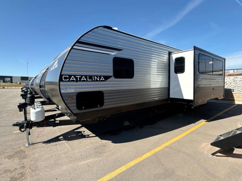 With any Catalina Summit Series 8 by Coachmen you will enjoy an affordable travel trailer packed with at-home comforts! The solid construction includes a Norco electromagnetic powder coated chassis, a seamless Alpha roof membrane, and full length frame outriggers for maximum support and durability. EZ lube axles with leaf spring suspension and self adjusting brakes provide smooth towing from home to campground, and the premium exterior graphics package is sure to turn heads as you travel down the highway. You will love the features included, such as a JBL Aura Cube media center, magnetic baggage door latches, 4,000 lumen interior touch lighting, and the list goes on!