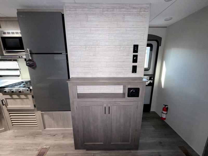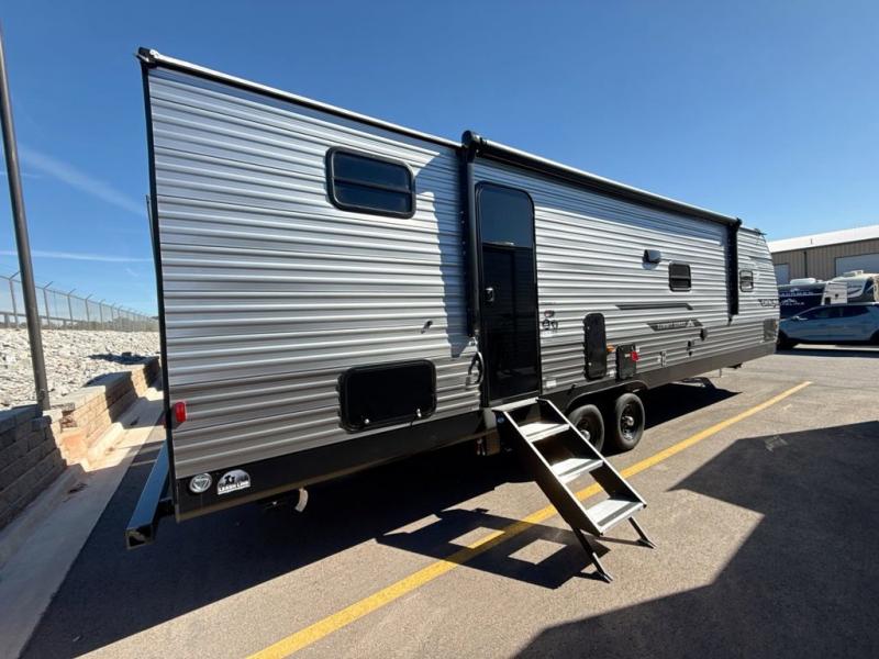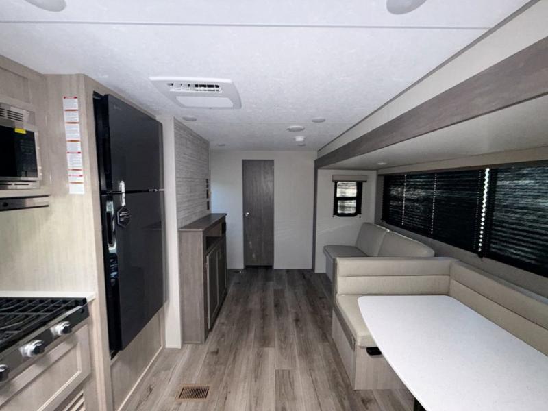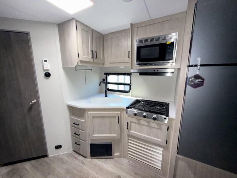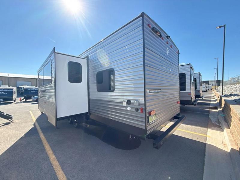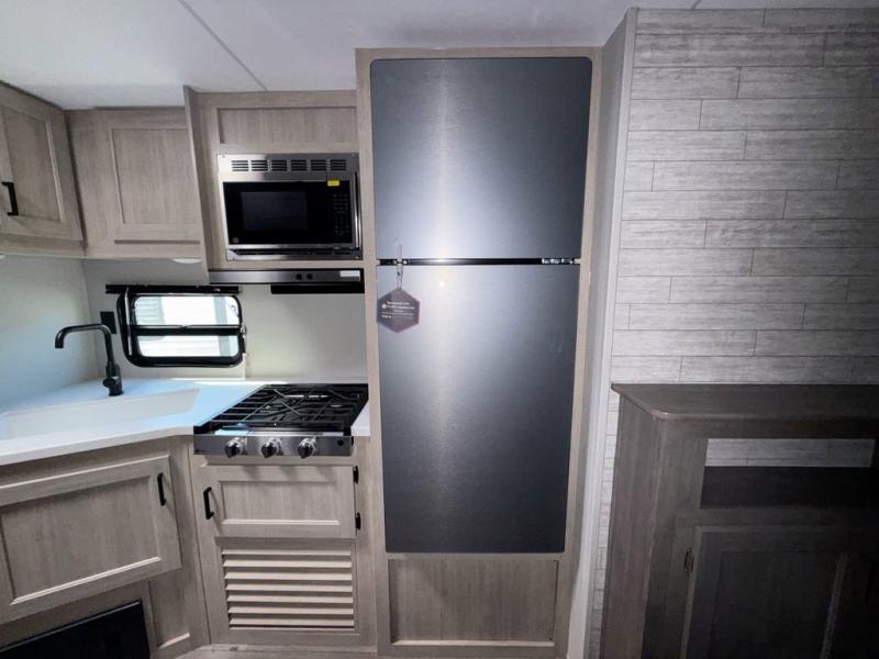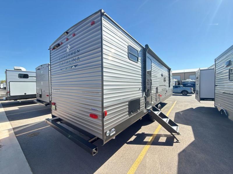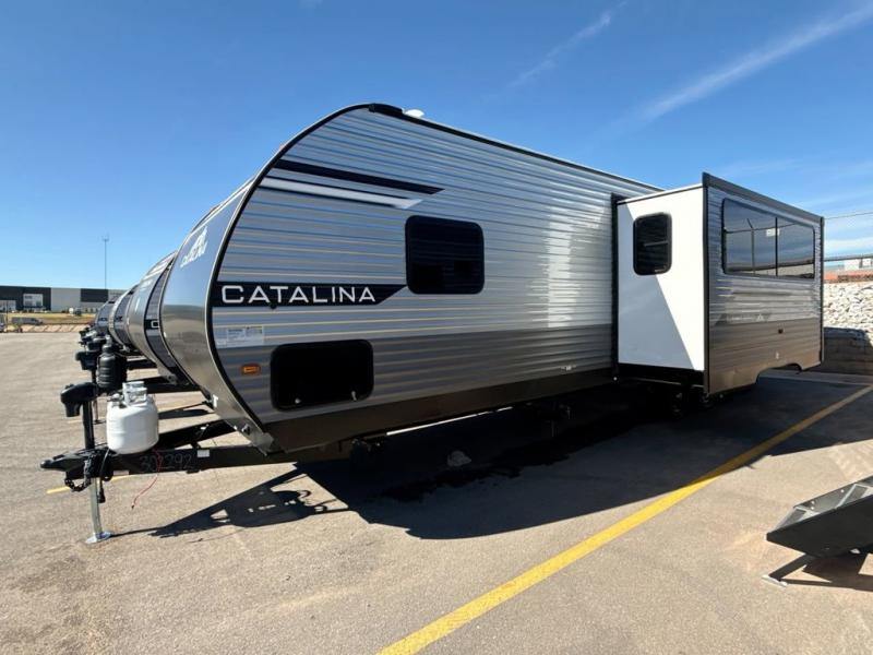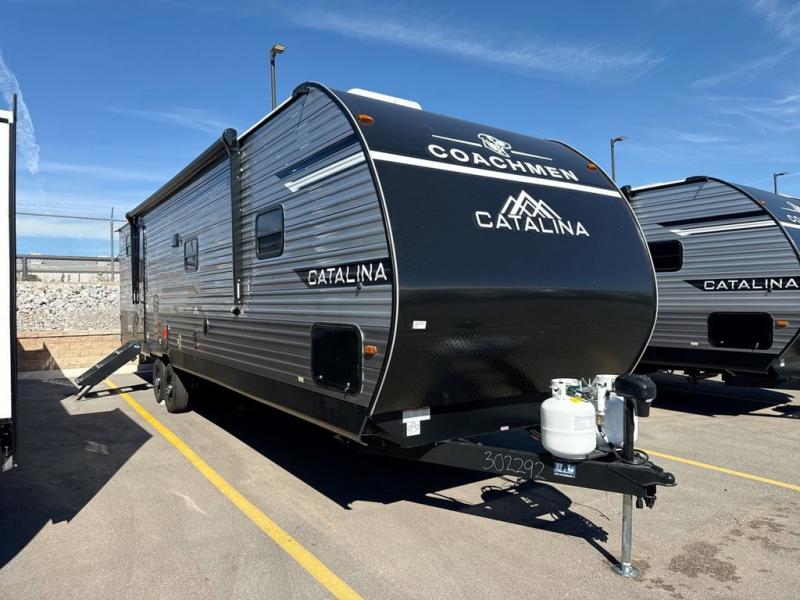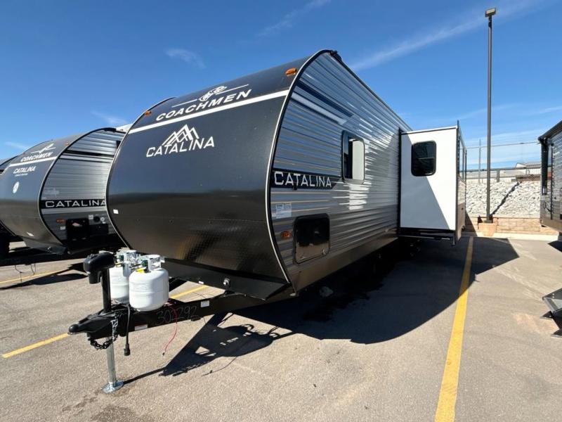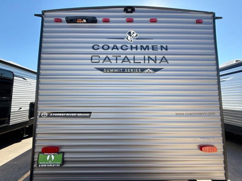 With any Catalina Summit Series 8 by Coachmen you will enjoy an affordable travel trailer packed with at-home comforts! The solid construction includes a Norco electromagnetic powder coated chassis, a seamless Alpha roof membrane, and full length frame outriggers for maximum support and durability. EZ lube axles with leaf spring suspension and self adjusting brakes provide smooth towing from home to campground, and the premium exterior graphics package is sure to turn heads as you travel down the highway. You will love the features included, such as a JBL Aura Cube media center, magnetic baggage door latches, 4,000 lumen interior touch lighting, and the list goes on!
