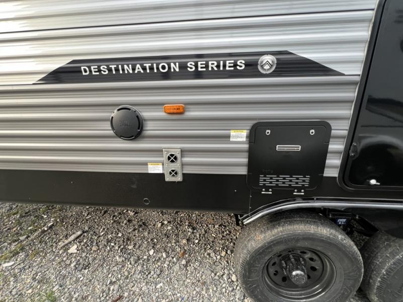 With any Catalina Destination trailer by Coachmen, you will enjoy comfortable extended stays wherever you decide to set up camp! The full length frame outriggers add strength to each unit, along with a seamless Alpha Roof membrane and Norco electromagnetic, powder coated chassis. You will love the open views provided by the large front bay windows, plus there are GE appliances, woodplank linoleum flooring, and hard valance window treatments to make your space feel more like home. Head outside to find a convenient "Leash Link" quick hookup D-ring for your furry friends, premium JBL exterior speakers, flush mount baggage doors for your gear, and the list of amenities goes on!