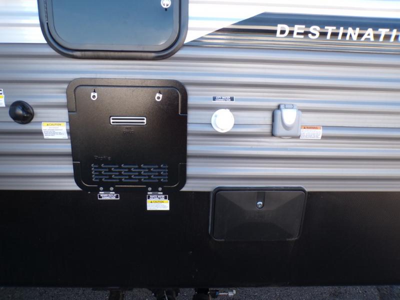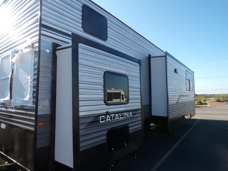 With any Catalina Destination trailer by Coachmen, you will enjoy comfortable extended stays wherever you decide to set up camp! The full length frame outriggers add strength to each unit, along with a seamless Alpha Roof membrane and Norco electromagnetic, powder coated chassis. You will love the open views provided by the large front bay windows, plus there are GE appliances, woodplank linoleum flooring, and hard valance window treatments to make your space feel more like home. Head outside to find a convenient "Leash Link" quick hookup D-ring for your furry friends, premium JBL exterior speakers, flush mount baggage doors for your gear, and the list of amenities goes on!