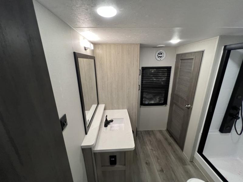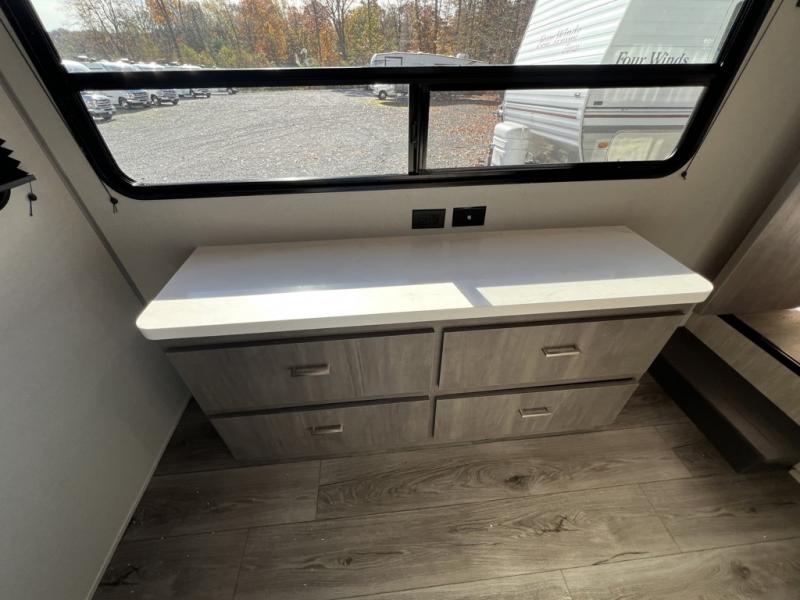 With any Catalina Destination trailer by Coachmen, you will enjoy comfortable extended stays wherever you decide to set up camp! The full length frame outriggers add strength to each unit, along with a seamless Alpha Roof membrane and Norco electromagnetic, powder coated chassis. You will love the open views provided by the large front bay windows, plus there are GE appliances, woodplank linoleum flooring, and hard valance window treatments to make your space feel more like home. Head outside to find a convenient "Leash Link" quick hookup D-ring for your furry friends, premium JBL exterior speakers, flush mount baggage doors for your gear, and the list of amenities goes on!