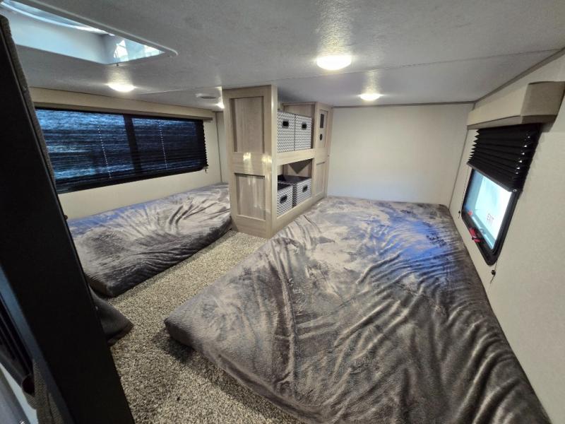 Bring the whole family—or even a few friends—for extended stays in comfort and style with the Catalina Destination 42CONDO! This spacious destination trailer is designed for large groups, featuring dual lofts at opposite ends of the unit for maximum sleeping space. Together, the lofts provide five bunk mats—four measuring 42" x 74" and one 28" x 74"—perfect for kids or overnight guests.
