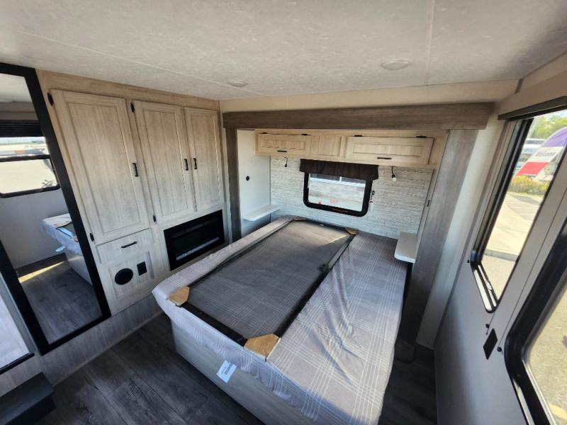 With any Catalina Destination trailer by Coachmen, you will enjoy comfortable extended stays wherever you decide to set up camp! The full length frame outriggers add strength to each unit, along with a seamless Alpha Roof membrane and Norco electromagnetic, powder coated chassis. You will love the open views provided by the large front bay windows, plus there are GE appliances, woodplank linoleum flooring, and hard valance window treatments to make your space feel more like home. Head outside to find a convenient "Leash Link" quick hookup D-ring for your furry friends, premium JBL exterior speakers, flush mount baggage doors for your gear, and the list of amenities goes on!