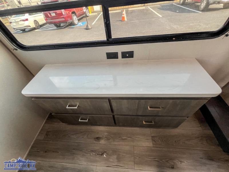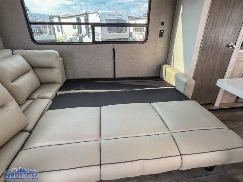 With any Catalina Destination trailer by Coachmen, you will enjoy comfortable extended stays wherever you decide to set up camp! The full length frame outriggers add strength to each unit, along with a seamless Alpha Roof membrane and Norco electromagnetic, powder coated chassis. You will love the open views provided by the residential-style sliding glass patio door, plus there are GE appliances, woodplank linoleum flooring, and hard valance window treatments to make your space feel more like home. Head outside to find a convenient "Leash Link" quick hookup D-ring for your furry friends, premium JBL exterior speakers, flush mount baggage doors for your gear, and the list of amenities goes on!