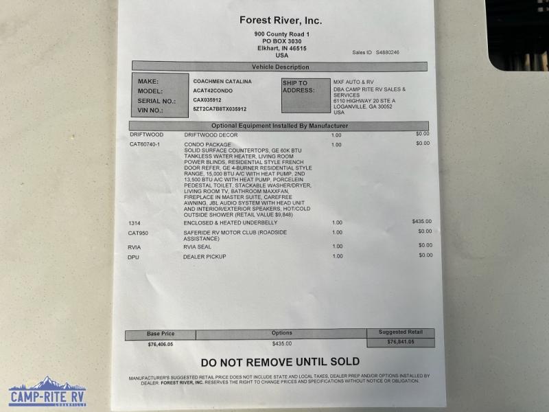 Coachmen Catalina Destination Series Loft 42CONDO destination trailer highlights: