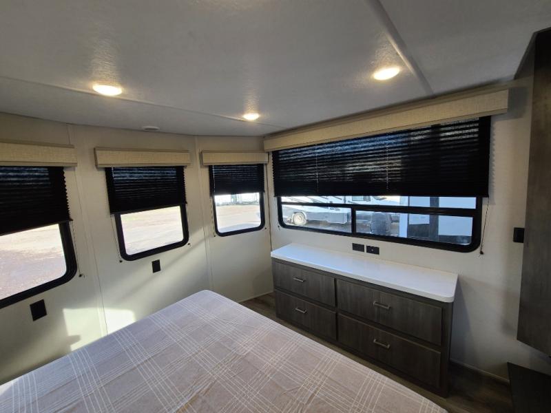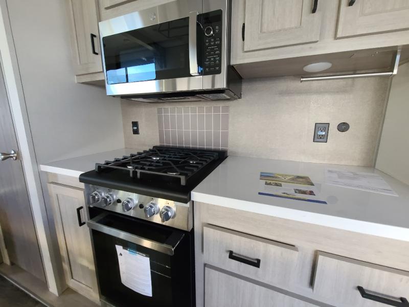 With any Catalina Destination trailer by Coachmen, you will enjoy comfortable extended stays wherever you decide to set up camp! The full length frame outriggers add strength to each unit, along with a seamless Alpha Roof membrane and Norco electromagnetic, powder coated chassis. You will love the open views provided by the residential-style sliding glass patio door, plus there are GE appliances, woodplank linoleum flooring, and hard valance window treatments to make your space feel more like home. Head outside to find a convenient "Leash Link" quick hookup D-ring for your furry friends, premium JBL exterior speakers, flush mount baggage doors for your gear, and the list of amenities goes on!