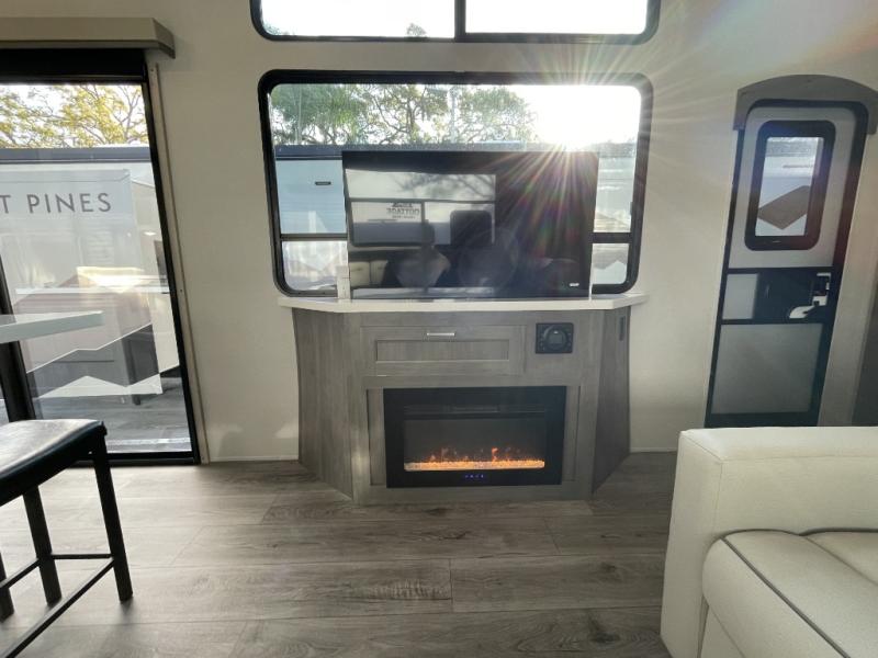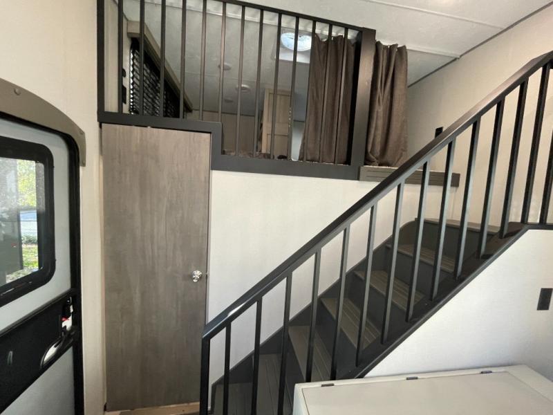 This unit with dual lofts and tons of sleeping space is ideal for a larger group! Lofts at either end of the unit overlook the living area and have a total of five bunk mats, with four 42" x 74" and one smaller 28" x 74". Downstairs there's a private bedroom with a queen bed and fireplace. The main living area has a huge hide-a-bed sectional sofa so you can fit even more guests, or just relax and watch the TV on the power lift in the entertainment center. The kitchen is well-equipped with a french door refrigerator, microwave, and pantry. The centerpiece here is a kitchen island with a deep basin farm-style sink and bar stool seating so your group can gather together and make new memories! The full bath in the rear has a roomy 48" x 30" shower with glass door, and a linen closet.