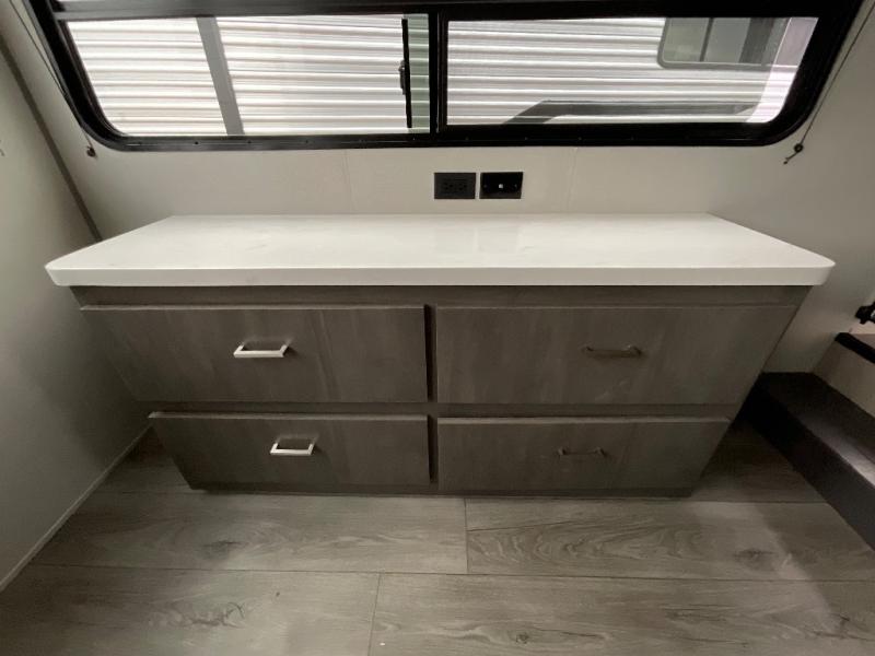 With any Catalina Destination trailer by Coachmen, you will enjoy comfortable extended stays wherever you decide to set up camp! The full length frame outriggers add strength to each unit, along with a seamless Alpha Roof membrane and Norco electromagnetic, powder coated chassis. You will love the open views provided by the residential-style sliding glass patio door, plus there are GE appliances, woodplank linoleum flooring, and hard valance window treatments to make your space feel more like home. Head outside to find a convenient "Leash Link" quick hookup D-ring for your furry friends, premium JBL exterior speakers, flush mount baggage doors for your gear, and the list of amenities goes on!