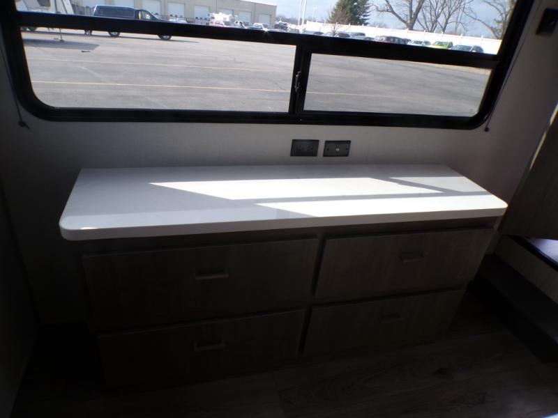 With any Catalina Destination trailer by Coachmen, you will enjoy comfortable extended stays wherever you decide to set up camp! The full length frame outriggers add strength to each unit, along with a seamless Alpha Roof membrane and Norco electromagnetic, powder coated chassis. You will love the open views provided by the residential-style sliding glass patio door, plus there are GE appliances, woodplank linoleum flooring, and hard valance window treatments to make your space feel more like home. Head outside to find a convenient "Leash Link" quick hookup D-ring for your furry friends, premium JBL exterior speakers, flush mount baggage doors for your gear, and the list of amenities goes on!