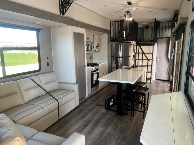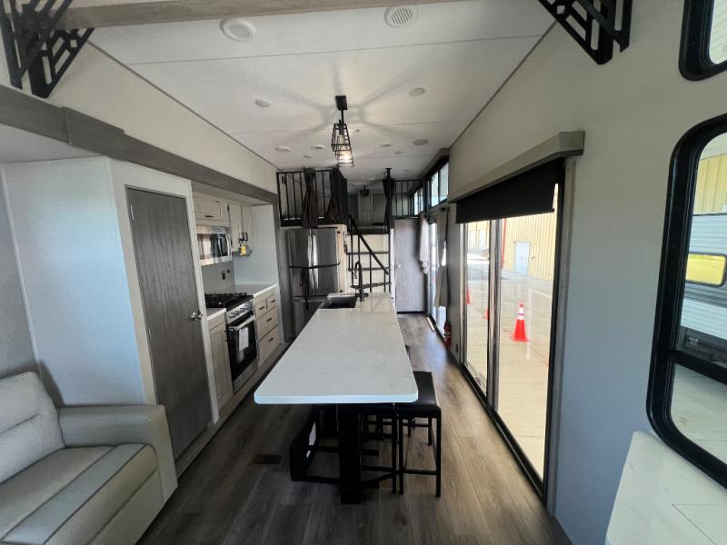 You’re going to find your ultimate seasonal escape in the New 2026 Coachmen RV Catalina Destination Series 42CONDO! This destination trailer is a true home-away-from-home, engineered for extended stays with an incredible dual-loft layout that provides extra sleeping or storage space for the whole family. The main level is a masterpiece of open-concept living, featuring a huge hide-a-bed sectional sofa and a power-lift TV that keeps your view clear when not in use. The chef-inspired kitchen is the heart of the home, boasting a massive kitchen island with bar stool seating, solid-surface countertops, and a residential French door refrigerator. You’ll love the private master suite downstairs, which offers a queen-size bed and its own electric fireplace for a cozy retreat. The luxury continues in the rear bathroom with a roomy 48" x 30" walk-in shower and a standard stackable washer and dryer to make long-term living effortless. With residential-style sliding glass patio doors, a GE tankless on-demand water heater, and three high-efficiency A/Cs, you’ll enjoy total comfort and a 180-degree view of your favorite campsite!